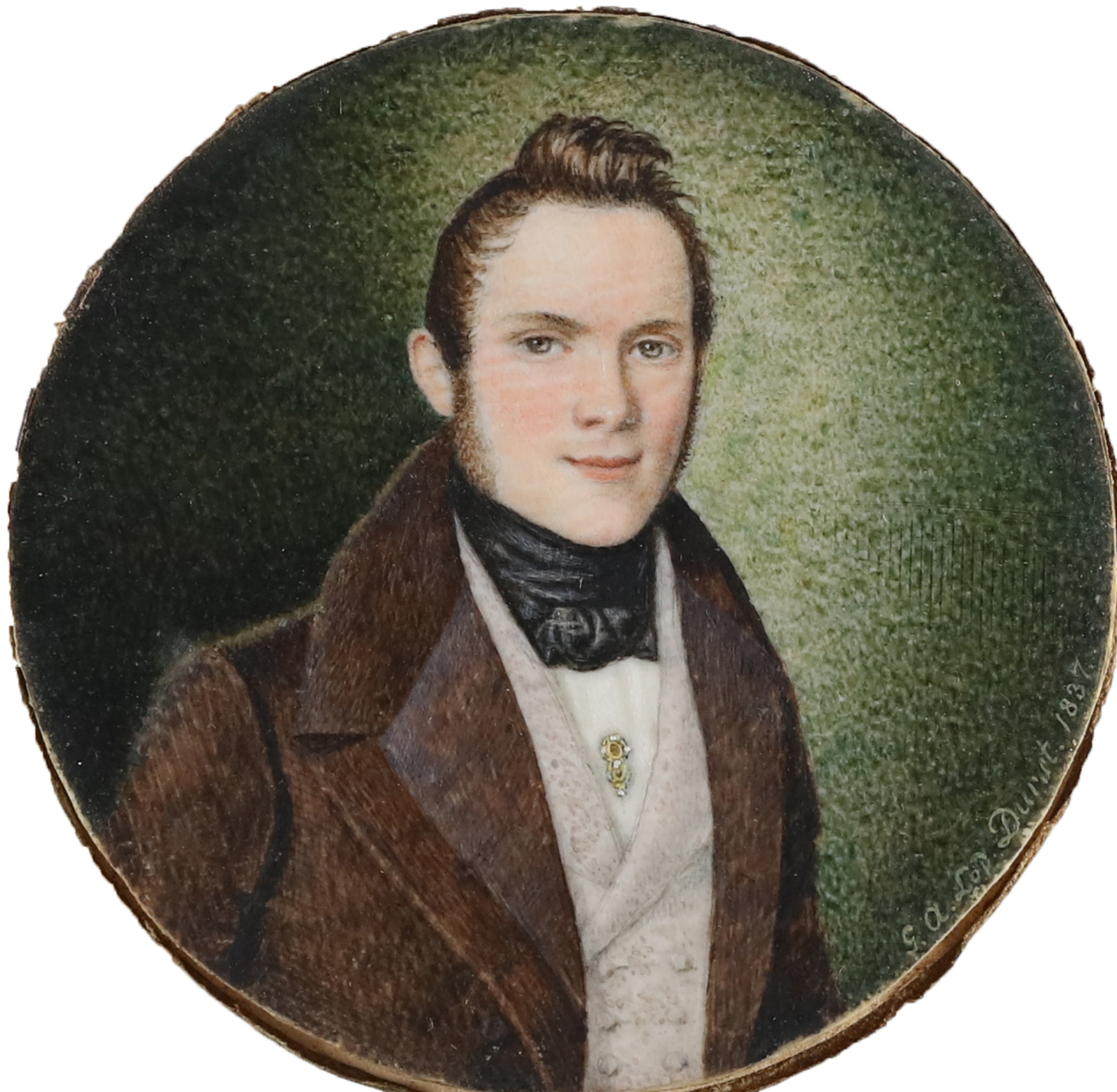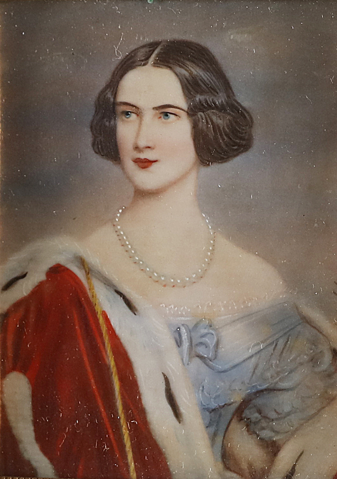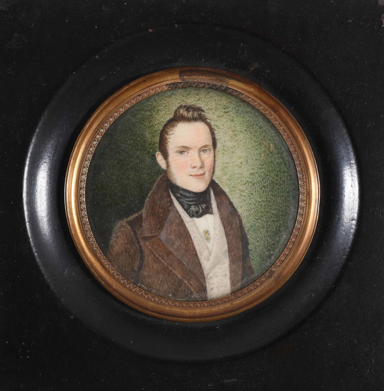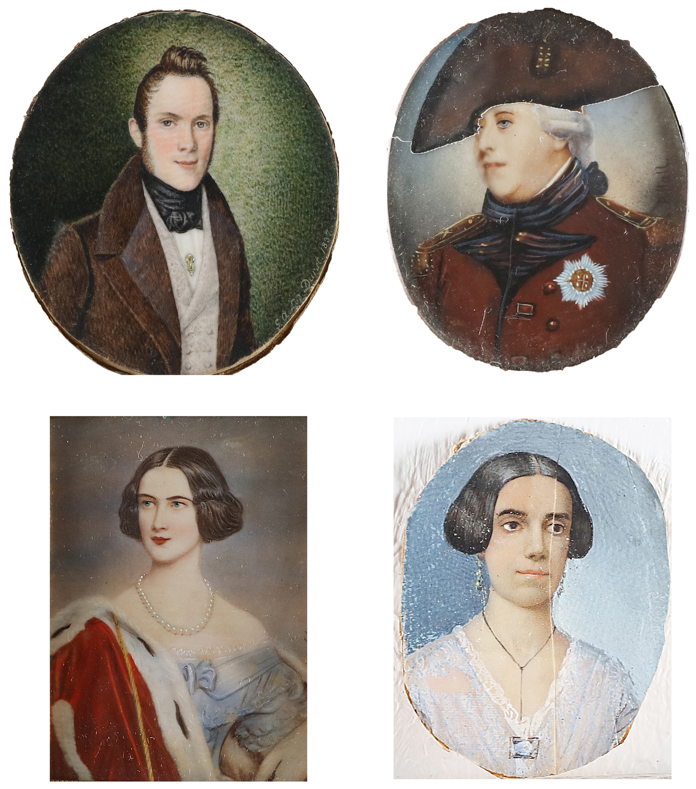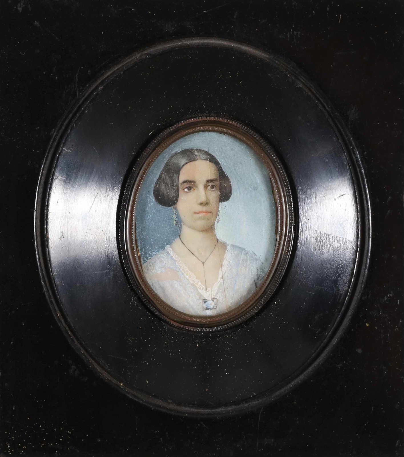 MINIATURISTA DEL XIX SECOLO Gruppo di 4 miniature in cornici ebanizzate, una...