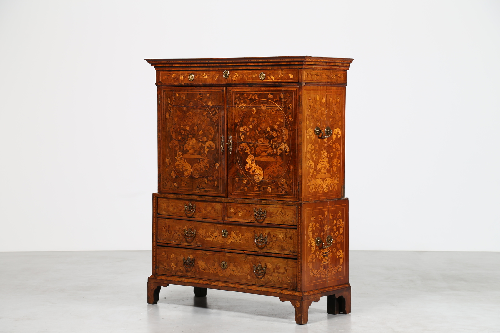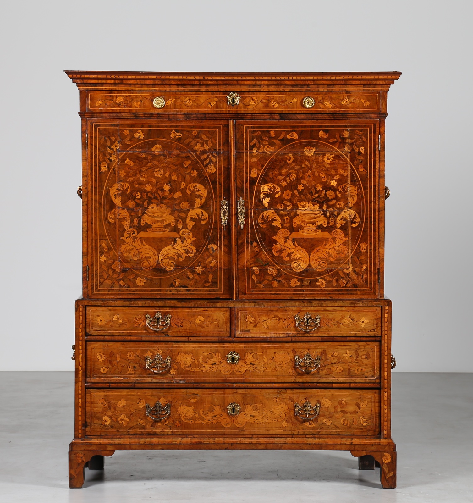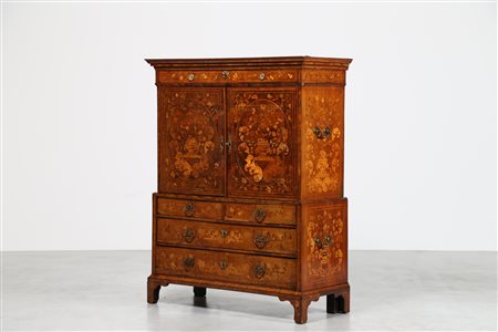MANIFATTURA OLANDESE DEL XIX SECOLO Doppio corpo lastronato e intarsiato a...