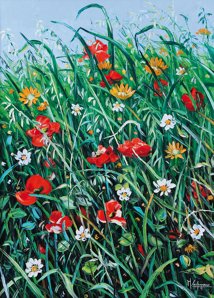 MICHELE CARPIGNANO Plagianello (Ta) 24/09/1958 Campo a Maggio olio su tela cm. 70x50, firma in basso a destra, titolo e firma al retro, dichiarazione d'autenticità dell'artista su foto, certificato della Telemarket (Bs) allegato.