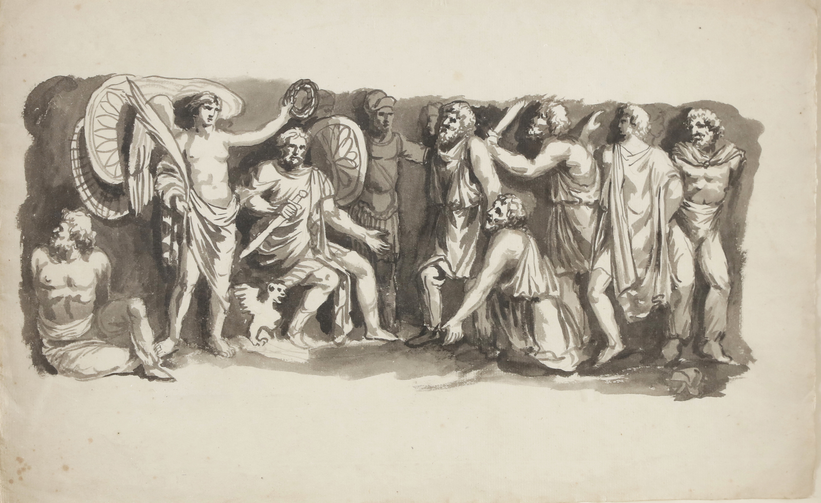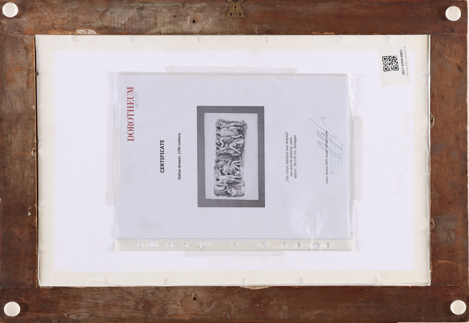 ARTISTA DEL XVII SECOLO. La vittoria di Apollo su Artemide. Tecnica mista su carta. Cm 39,00 x 23,50. Certificato della Casa d'aste Dorotheum, 2004.