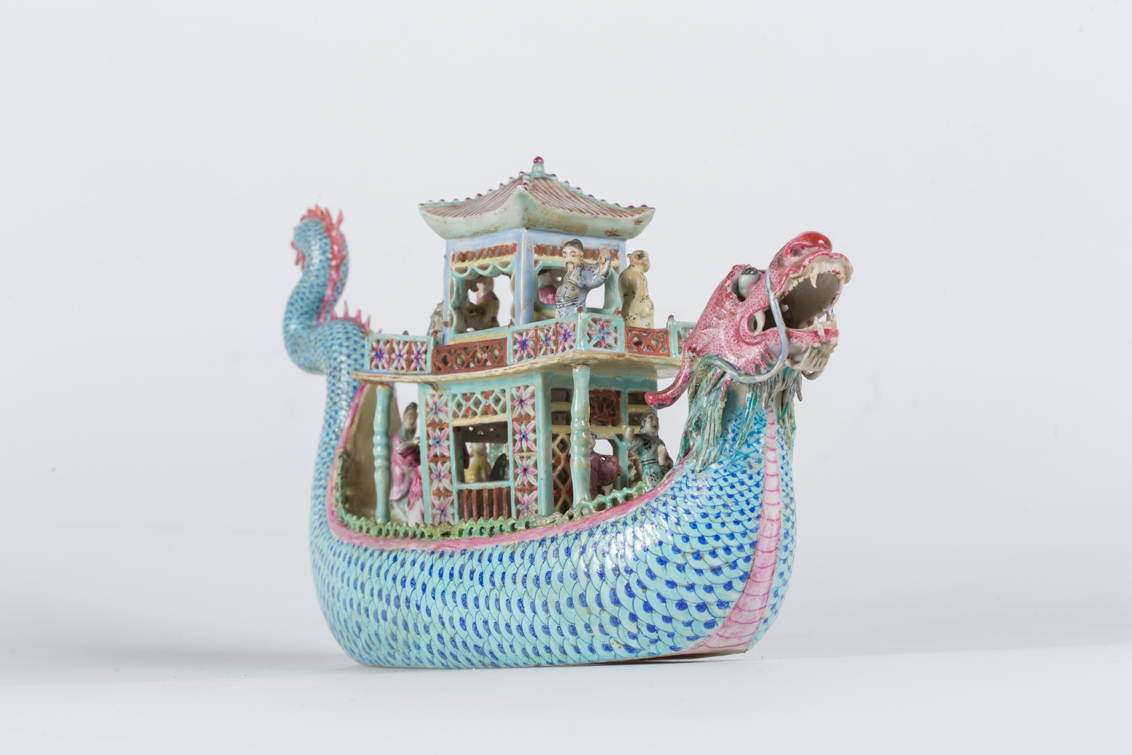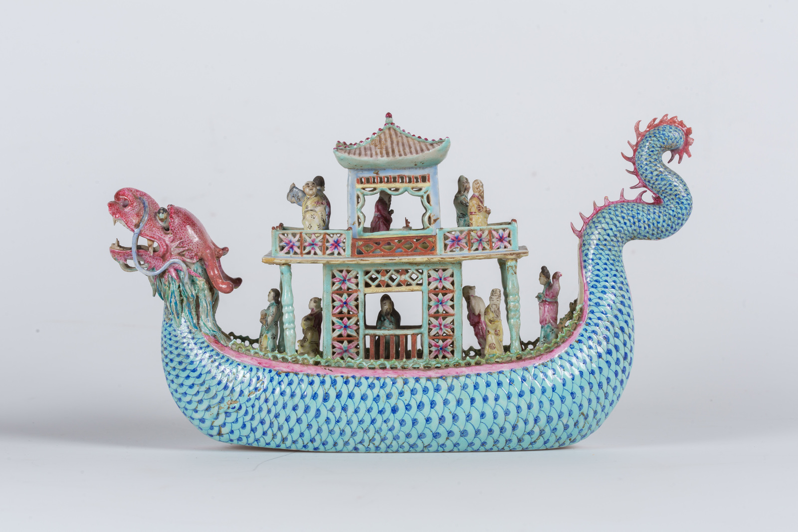 Chinese Art A pottery enamelled dragon boat China, Qing dynasty, 19th century . . Cm 25,50 x 14,00.