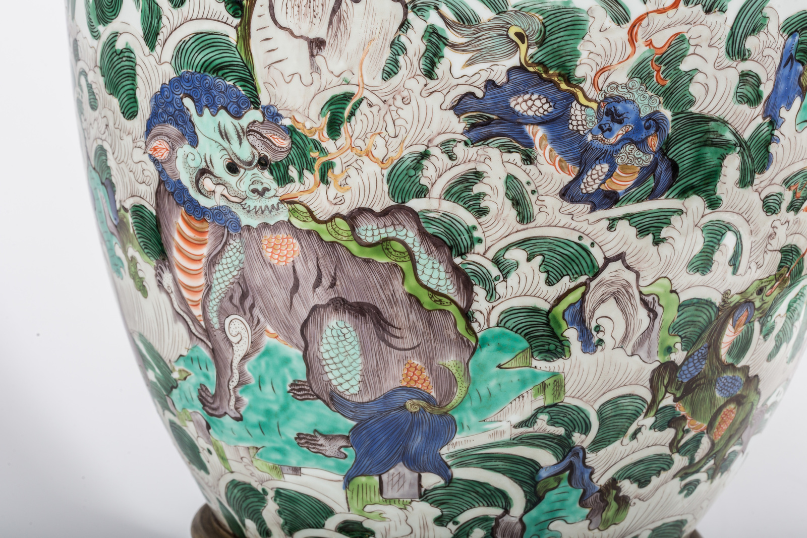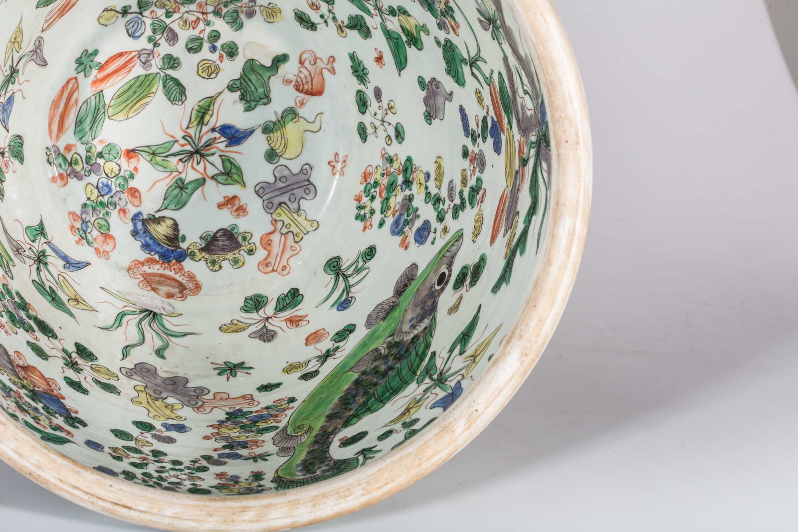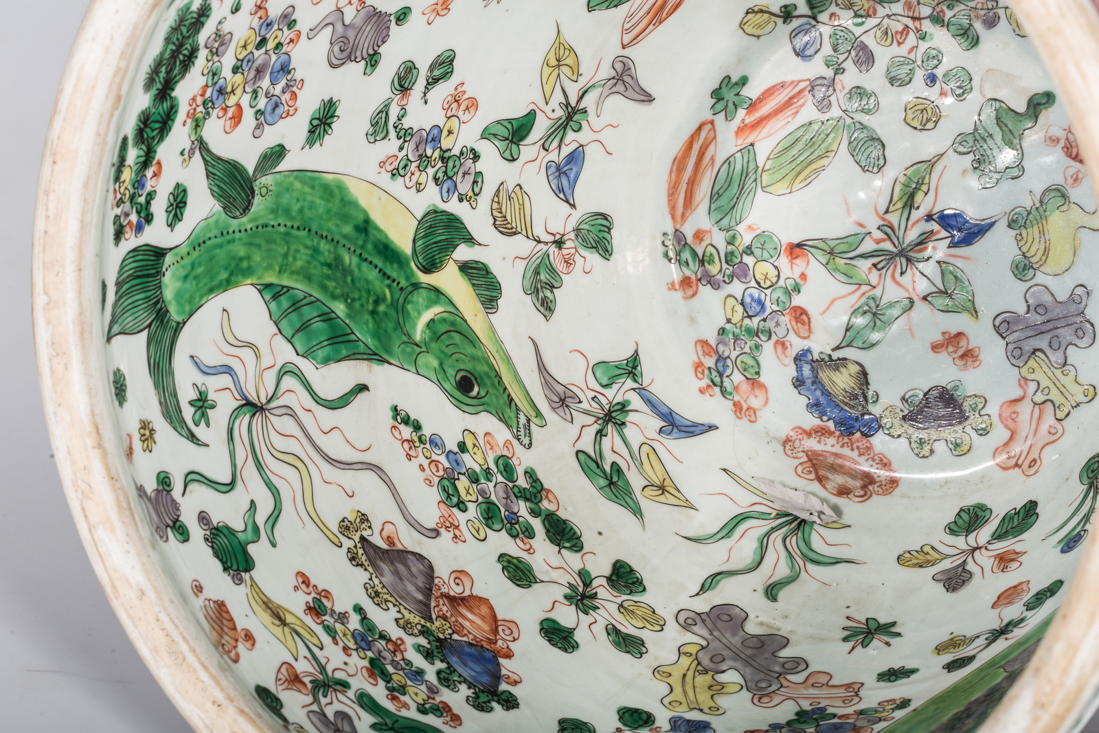 Cina, dinastia Qing, XVIII - XIX secolo . -. Cm 38,00 x 41,00. Grande vaso in ceramica dipinto a tema marino nei colori della famiglia verde.