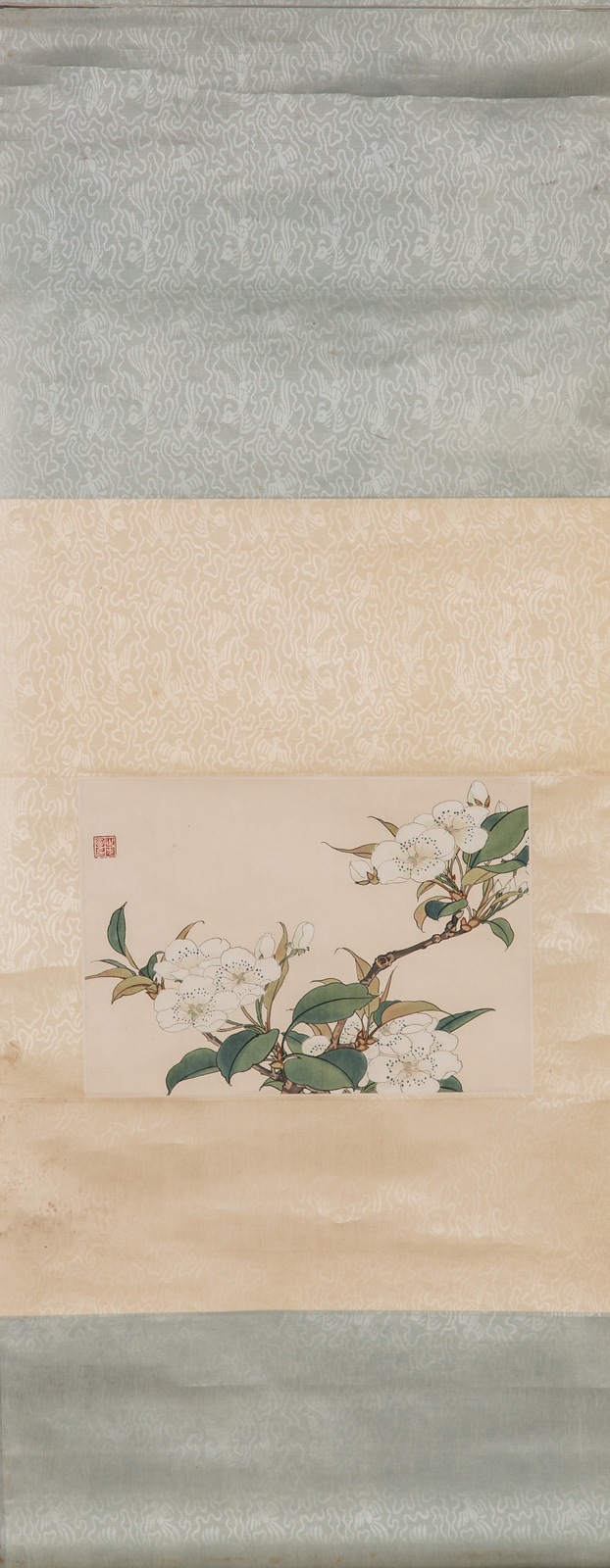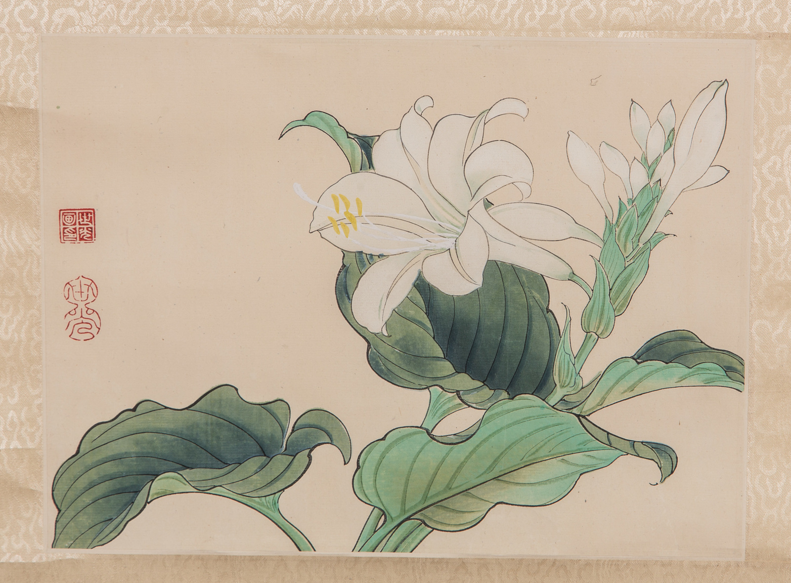 Chinese Art A pair of ink and colors paintings on paper depicting flowers