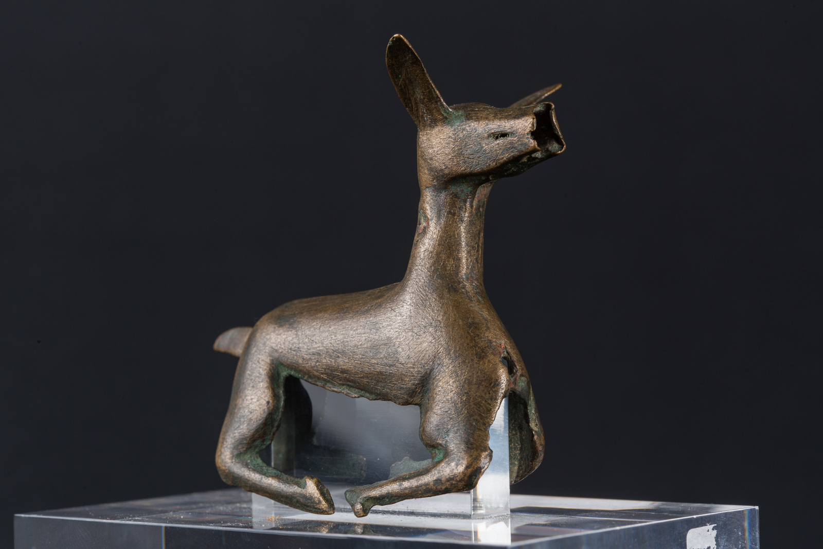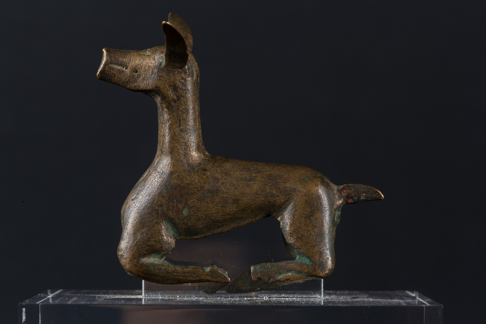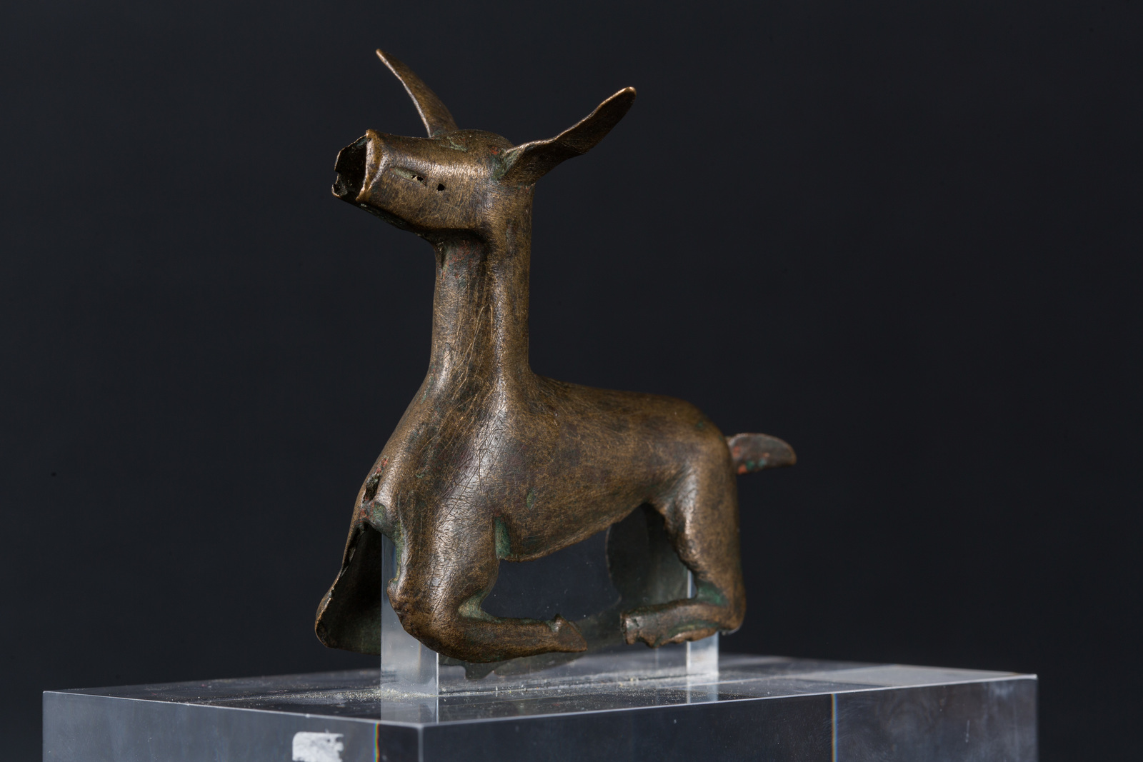 Chinese Art A bronze zoomorphic ornament (ordos) Northwestern China, 5th-4th century b.C. . Cm 8,00 x 8,00.