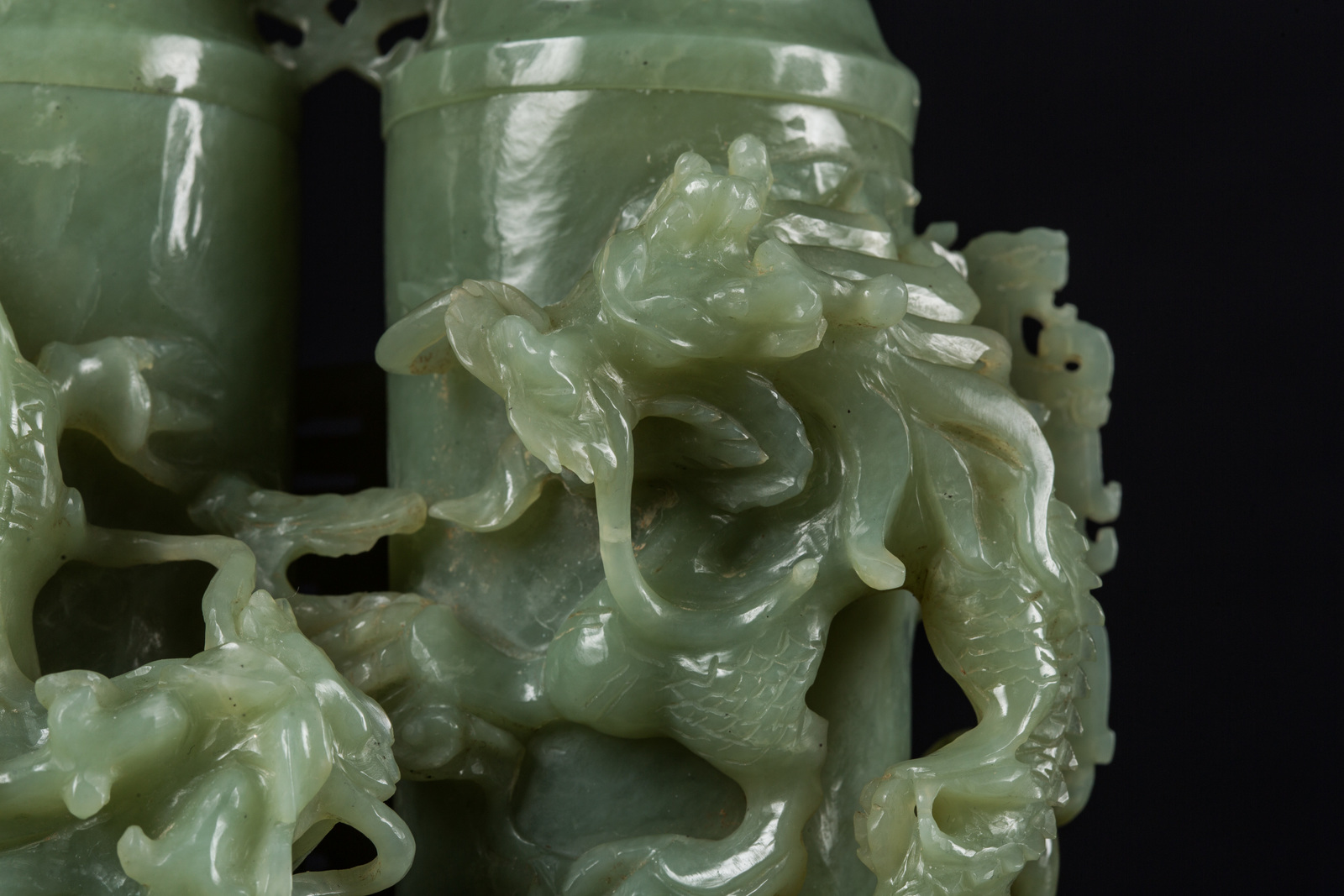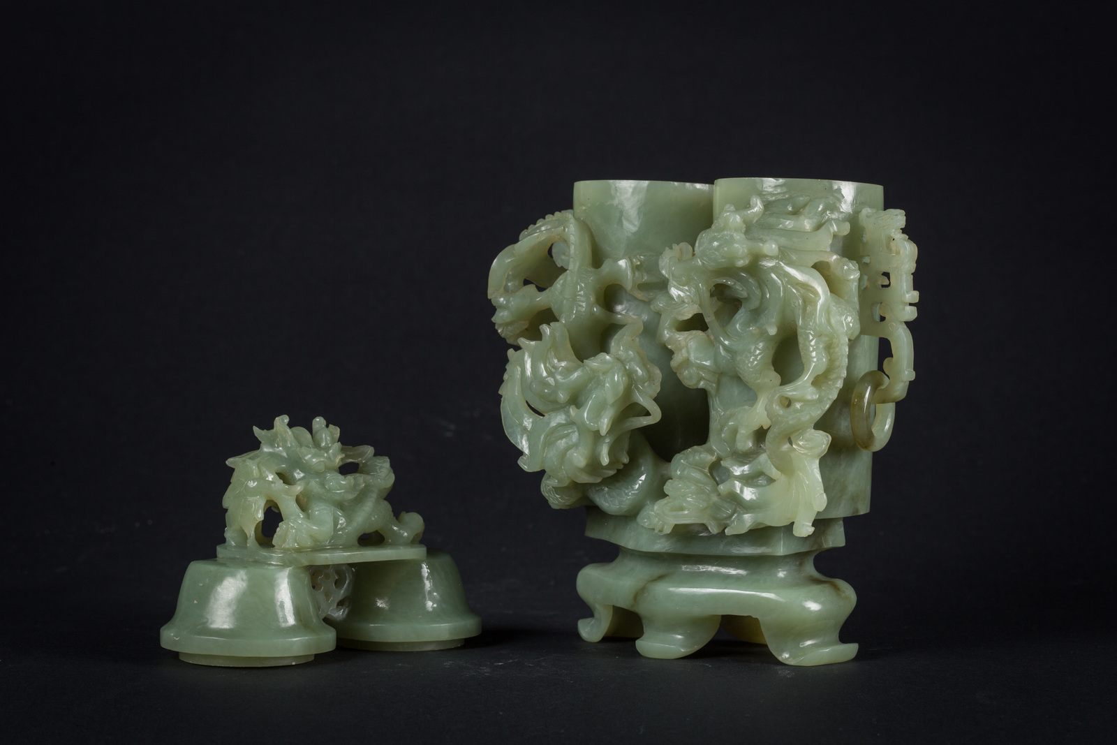 Chinese Art A jade scent holder carved with dragons in relief