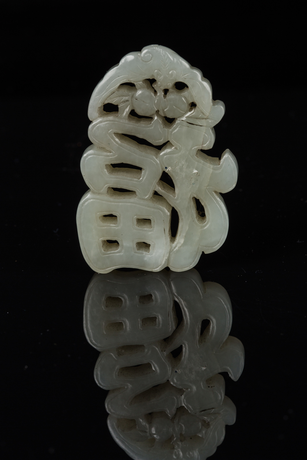 Arte Cinese Intaglio in giada con simbolo del buon auspicio, pipistrello e...