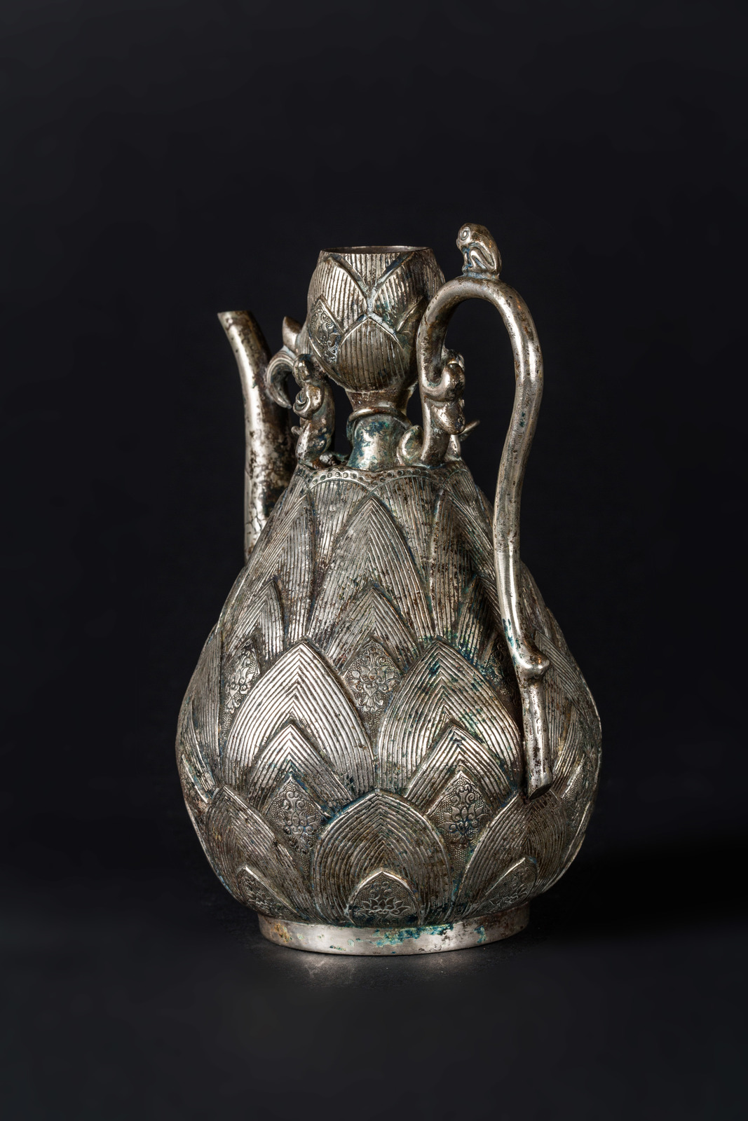 Chinese Art An embossed metal ewer in the Tang style