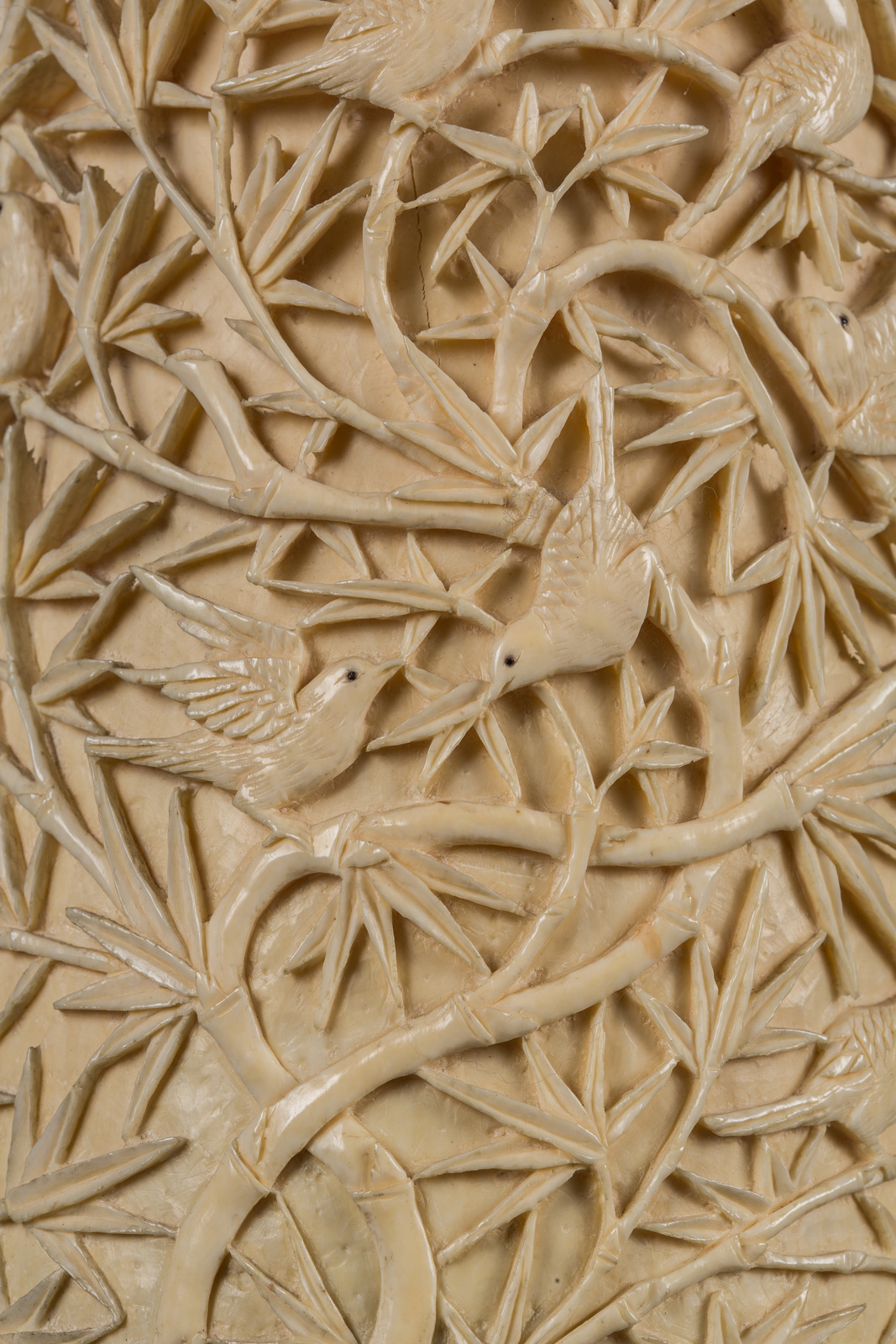 Arte Cinese Portapennelli in avorio intagliato con uccelli su rami di bamboo