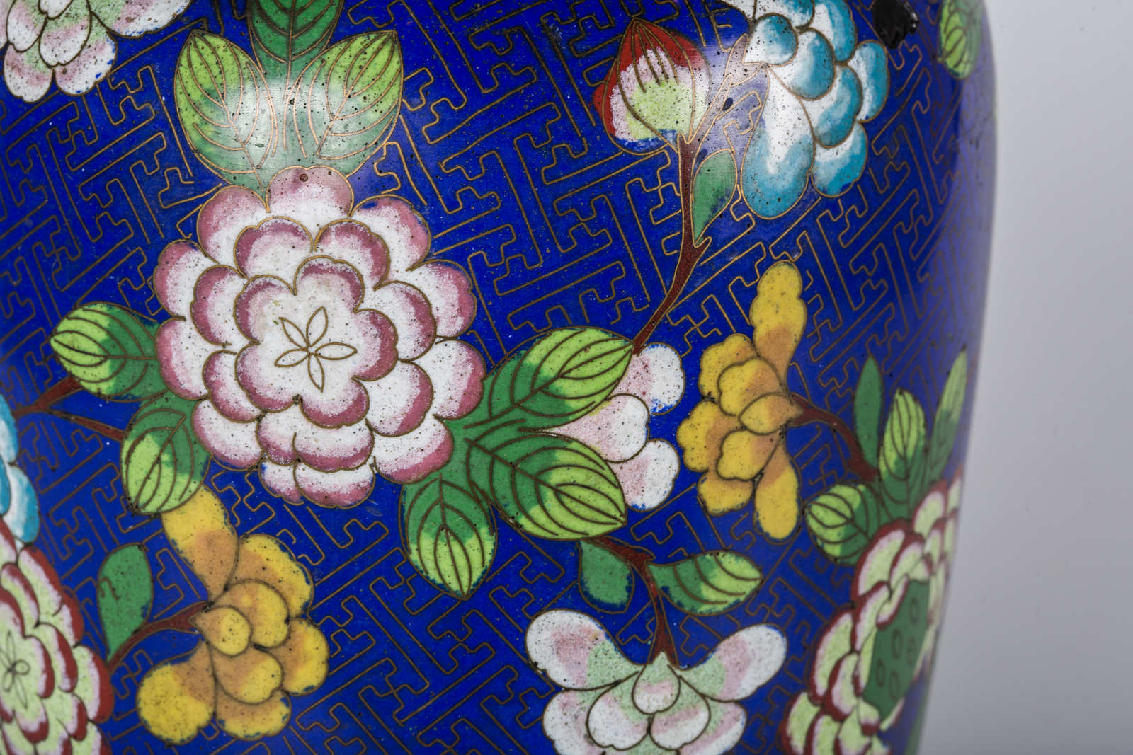 Lot 129 | Arte Cinese Vaso cloisonné decorato con motivi floreali su fondo blu Cina,...