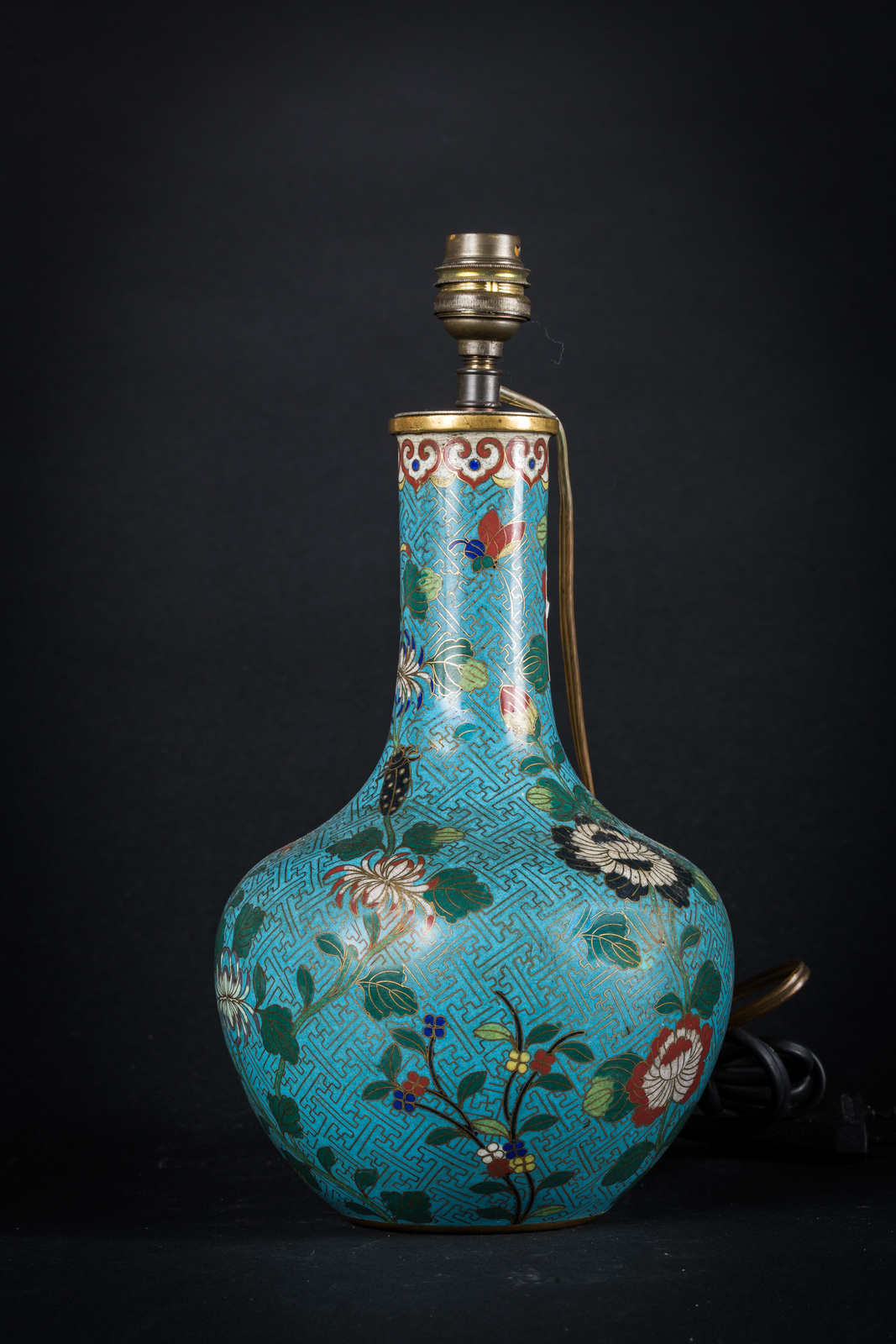Arte Cinese Vaso cloisonné montato a lampada Cina, dinastia Qing, inizi XIX...