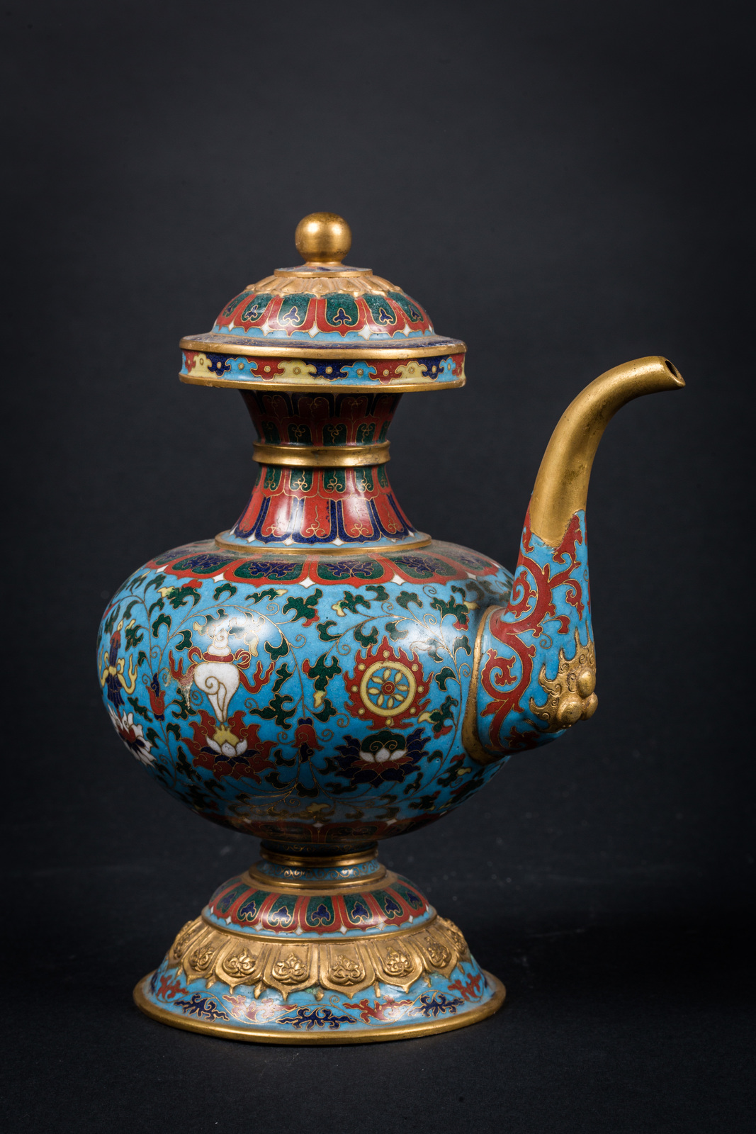 Chinese Art A cloisonné ewer decorated with Buddhist auspicious symbols