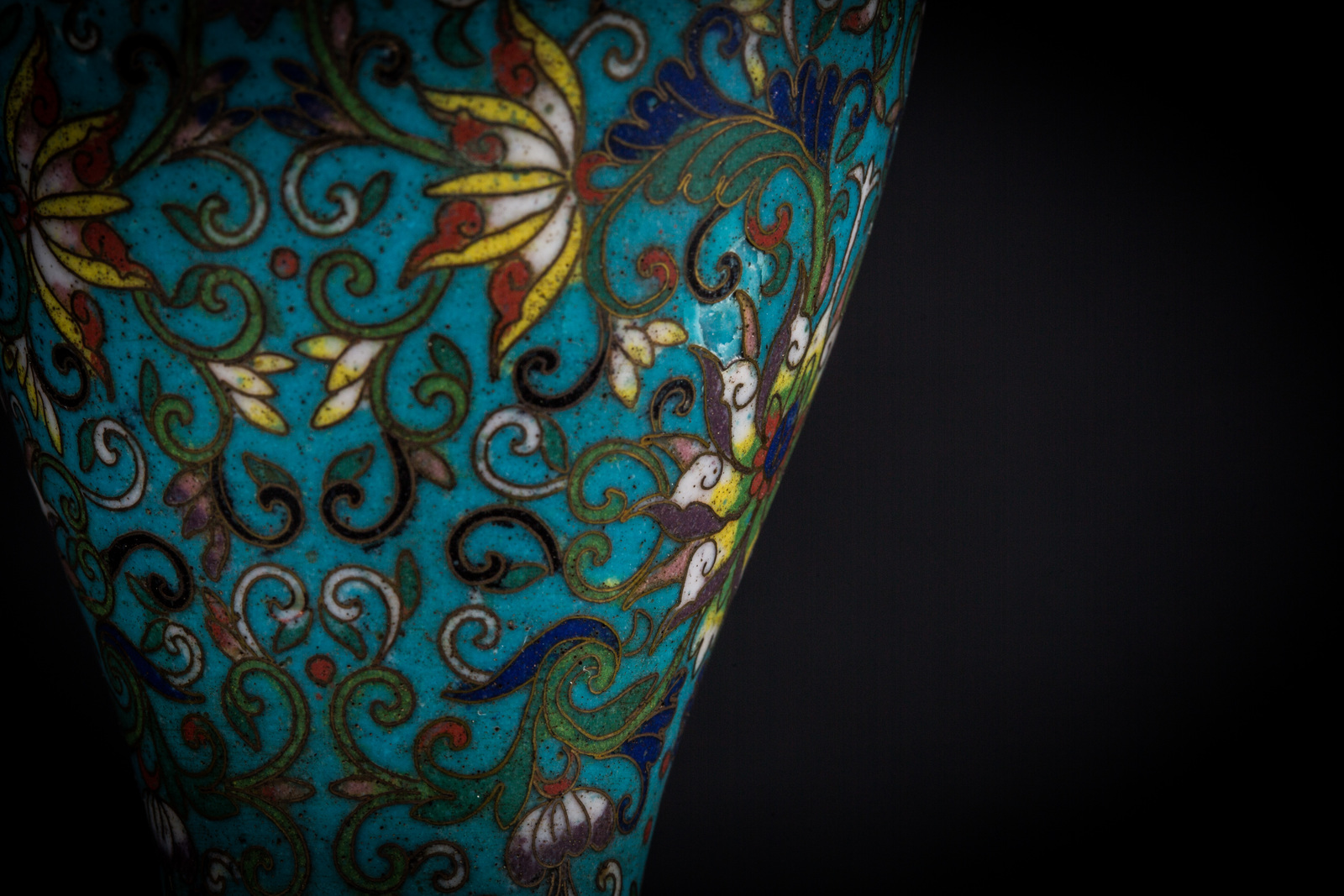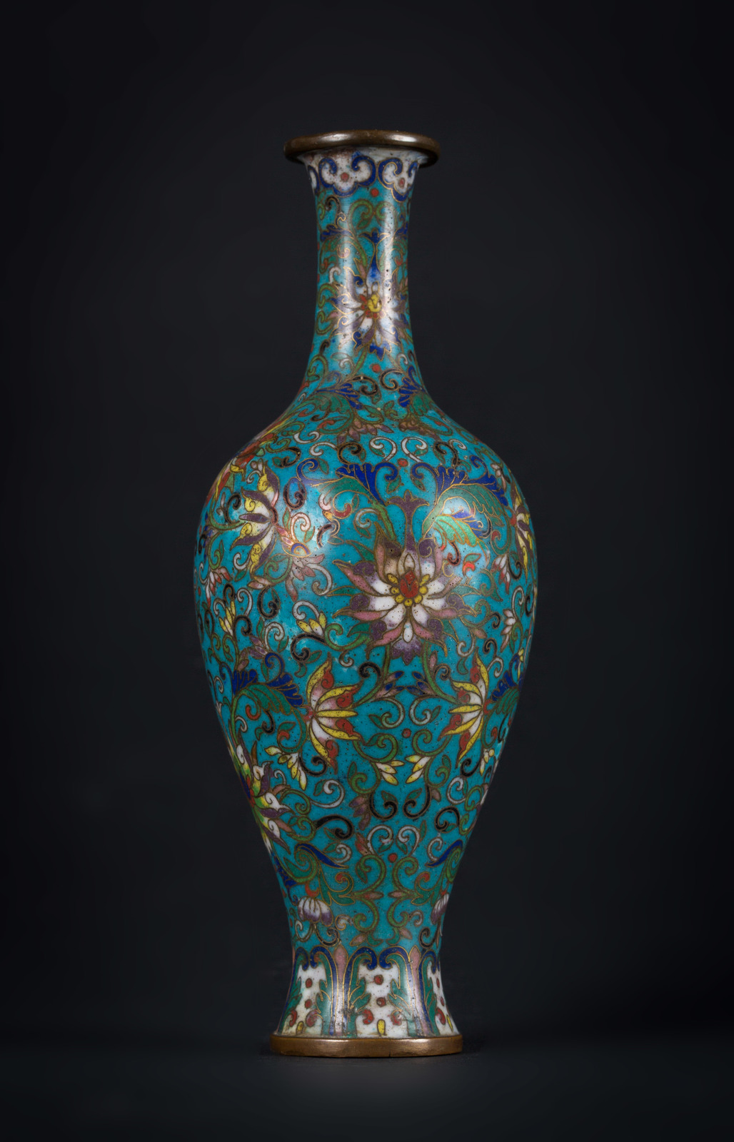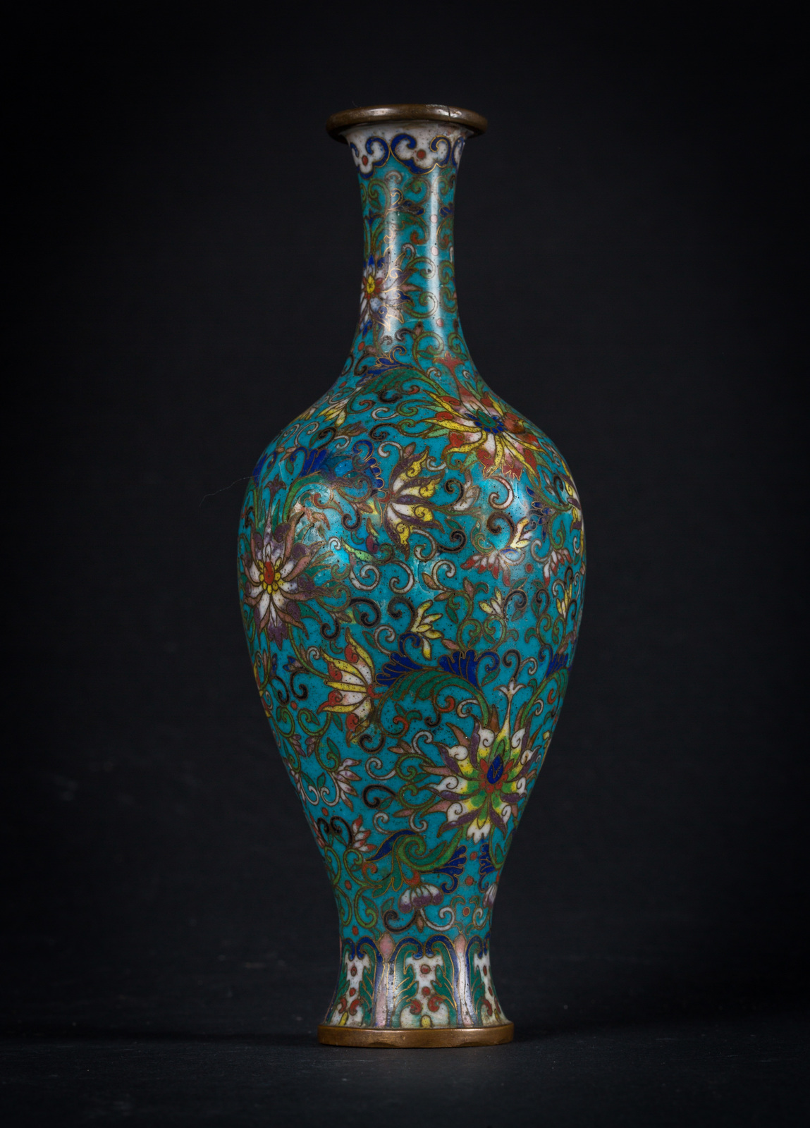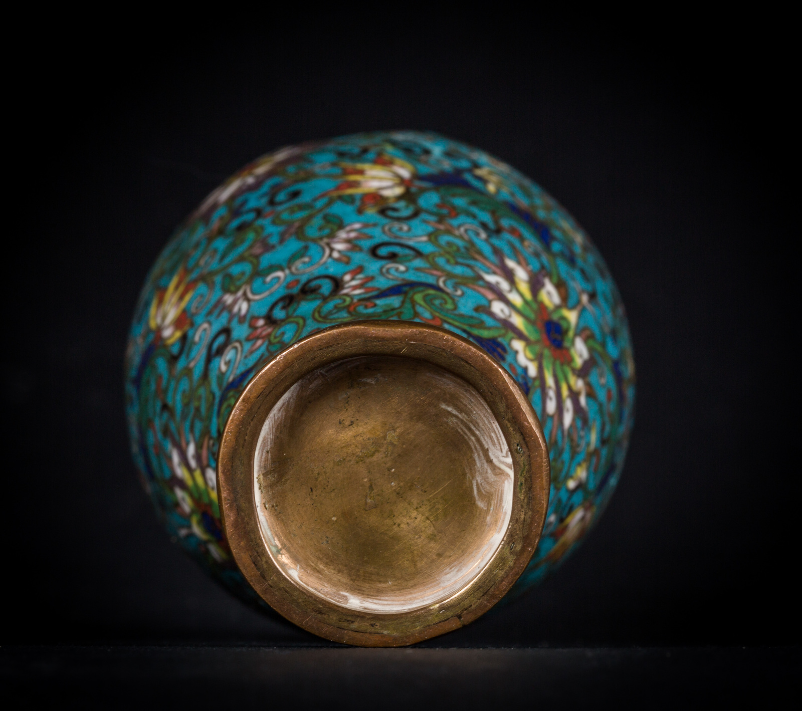Chinese Art A small cloisonné vase with floral design over turquoise ground