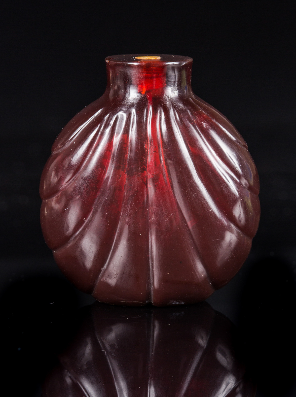 Lot 159 | Arte Cinese Tabacchiera in vetro viola a forma di conchiglia Cina, XIX - XX...