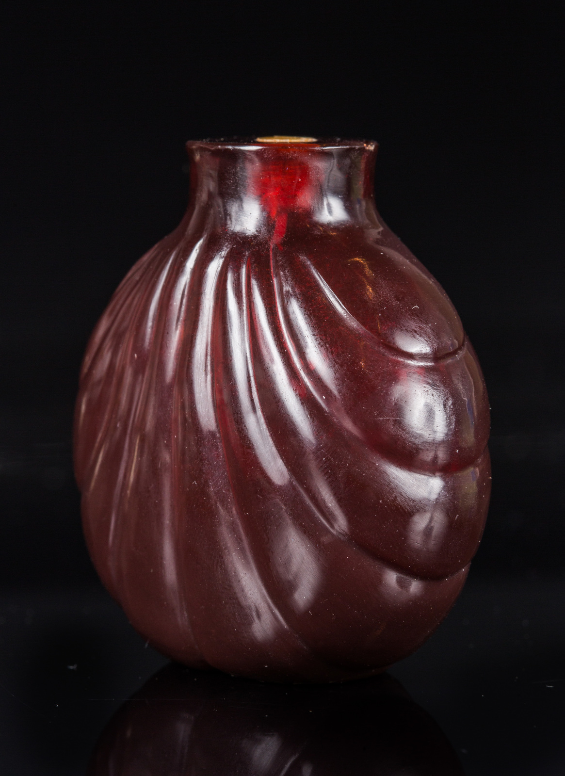 Chinese Art A purple glass snuff bottle in the shape of a conch China, 19th - 20th century . . Cm 5,00 x 5,50 x 3,00.