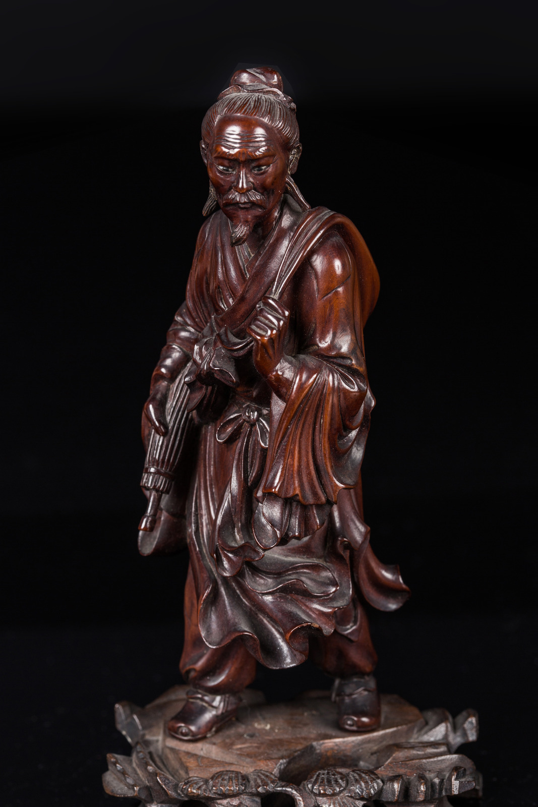 Arte Cinese Lotto composto da: una spatola in avorio, un ciondolo ed una statua in legno