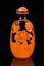 Arte Cinese Tabacchiera nera in vetro di Pechino con fiori arancioni e tappo...