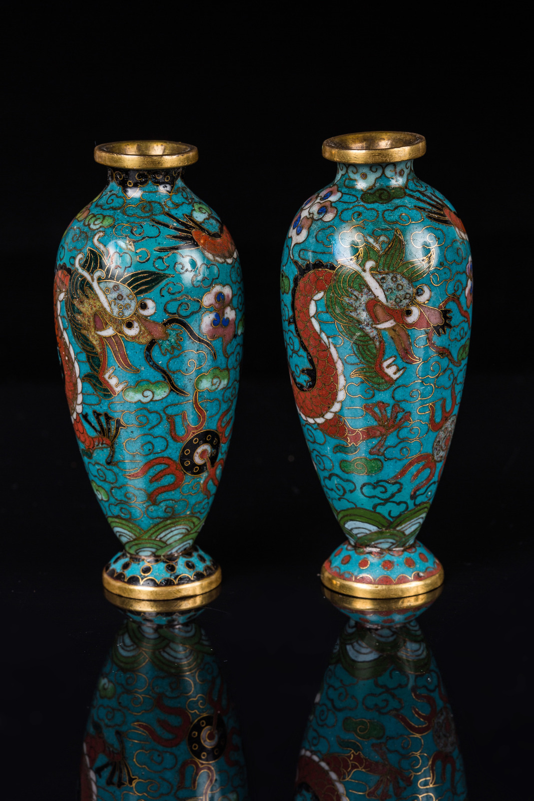 Chinese Art A pair of cloisonné small vases