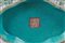 Cina, periodo Repubblica, XX secolo . -. Cm 22,50 x 8,00. Sullo sfondo verde, vivacizzato da tralci e fiori, si stagliano due riserve polilobate contenenti paesaggi.