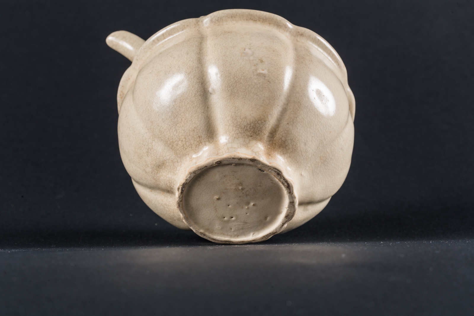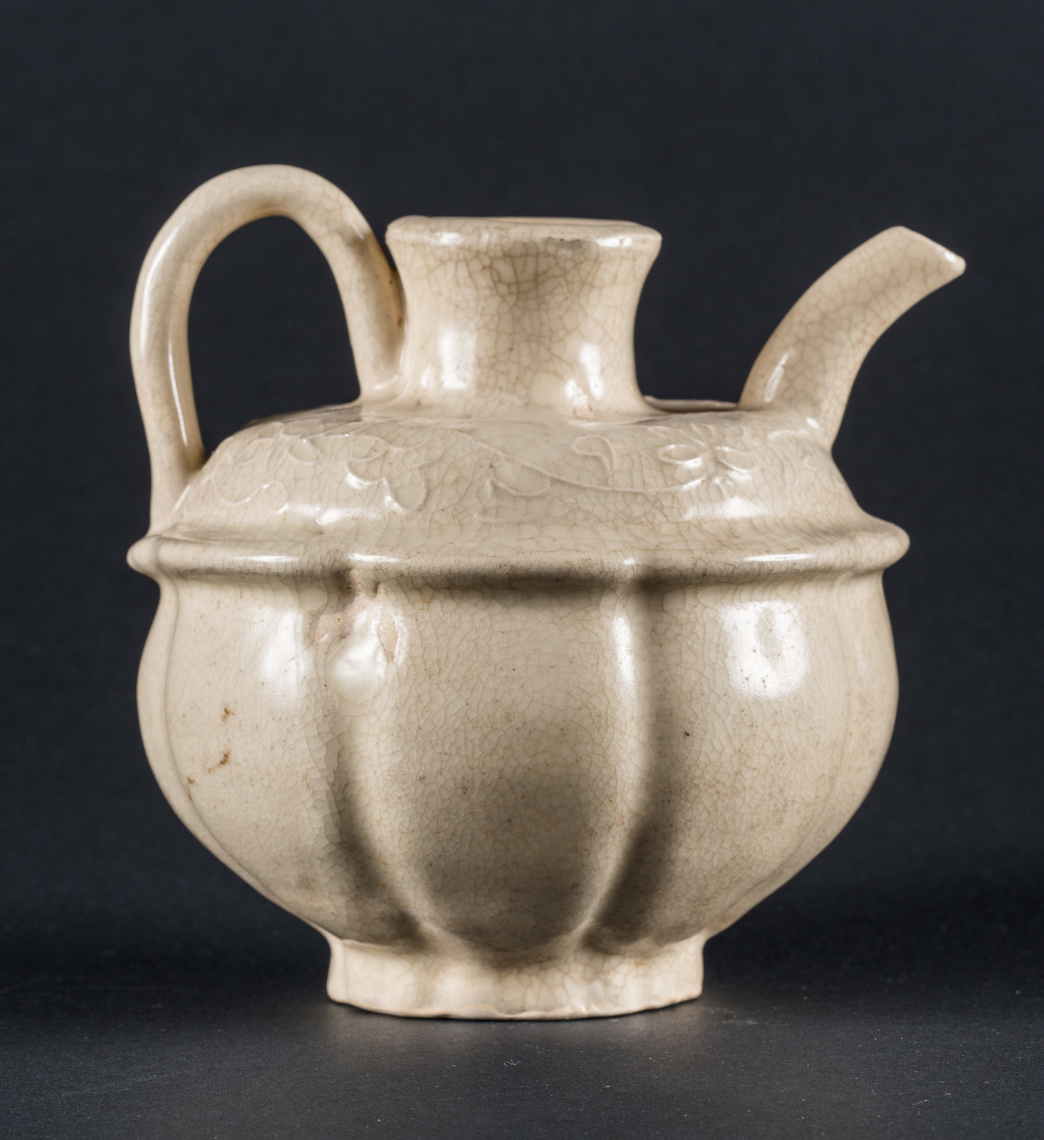 Arte Cinese A pottery teapot moulded with floral motifs under cream glaze