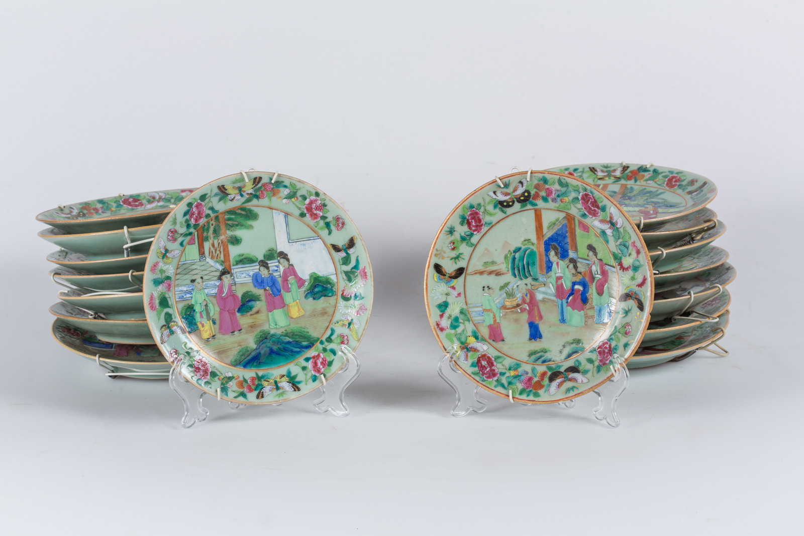 Arte Cinese Servizio di 16 piatti piccoli in porcellana Canton Cina, XIX...