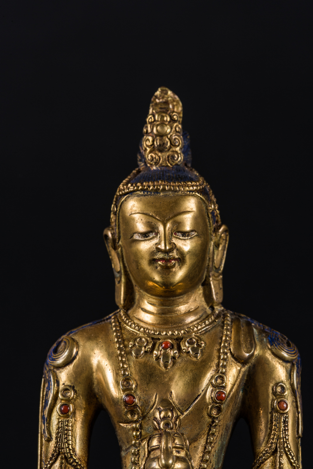Arte Cinese Scultura in bronzo dorato raffigurante Amitayus