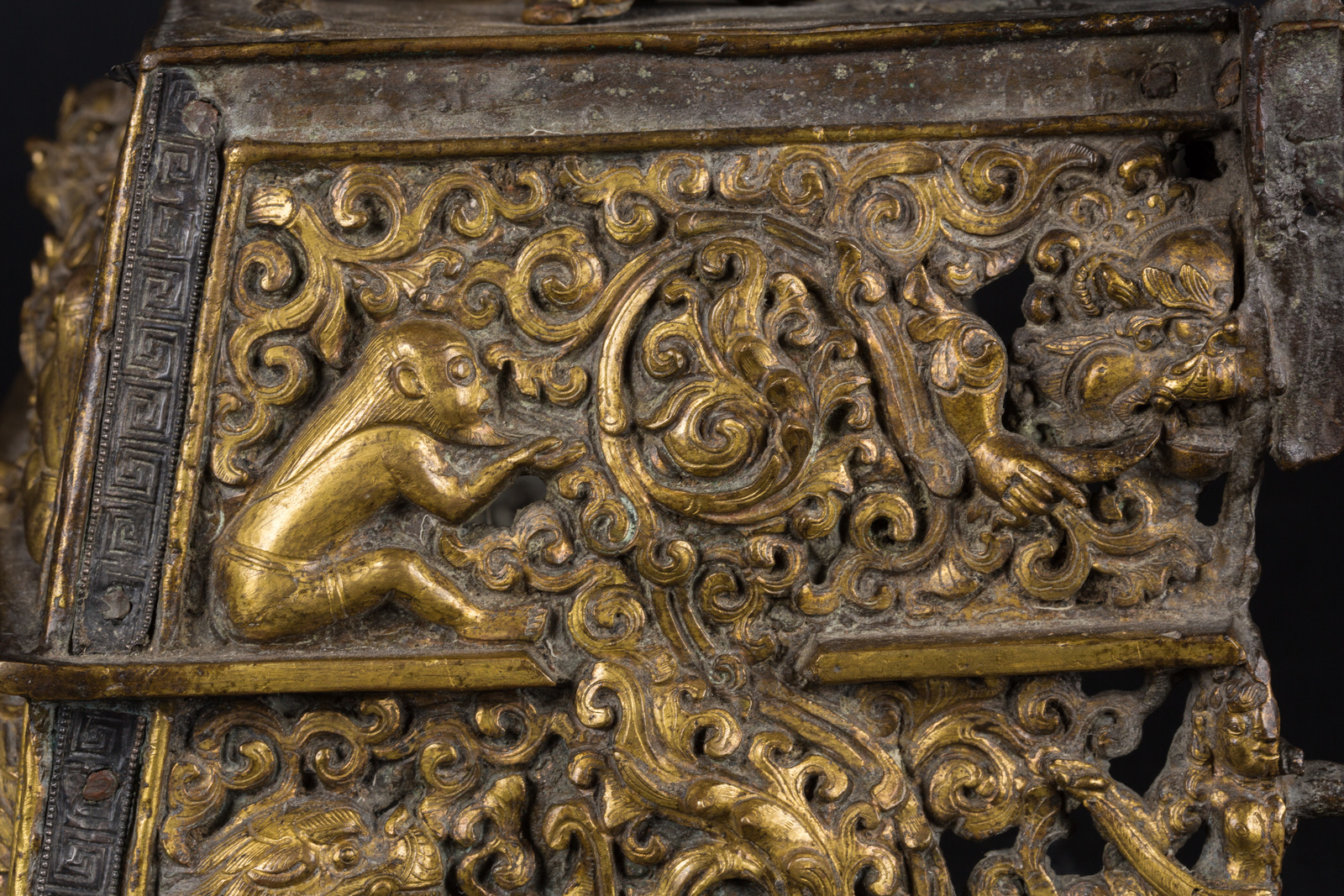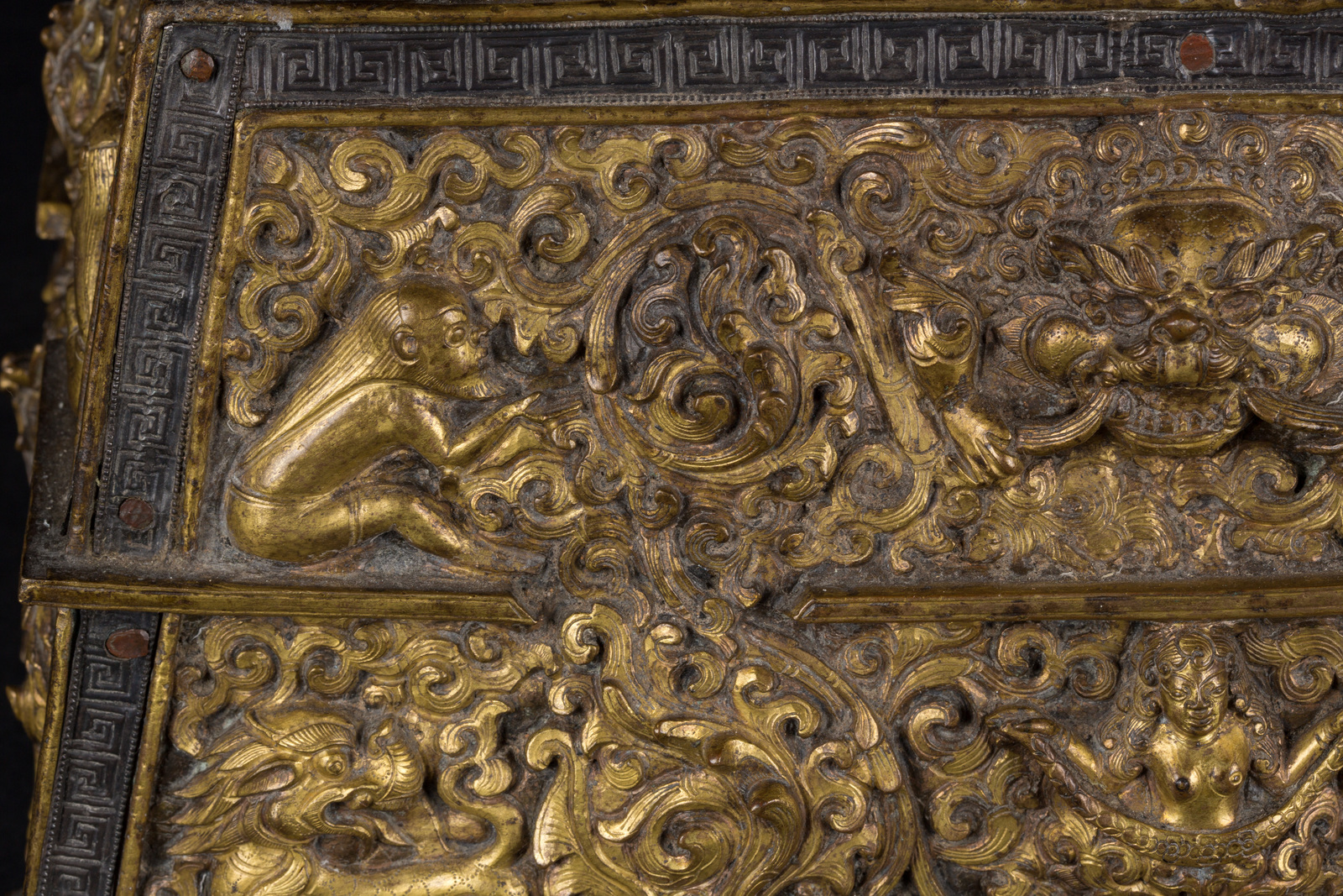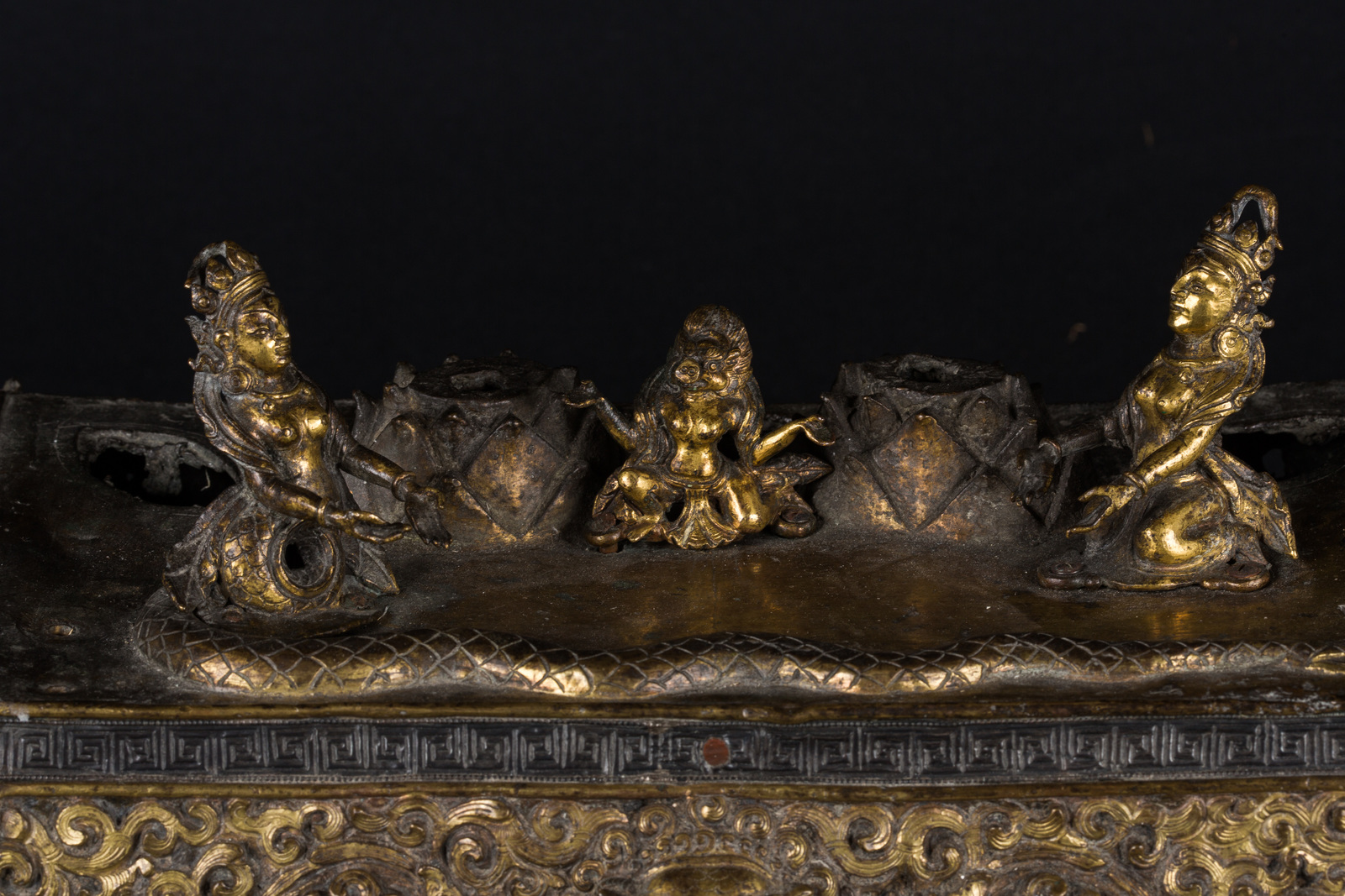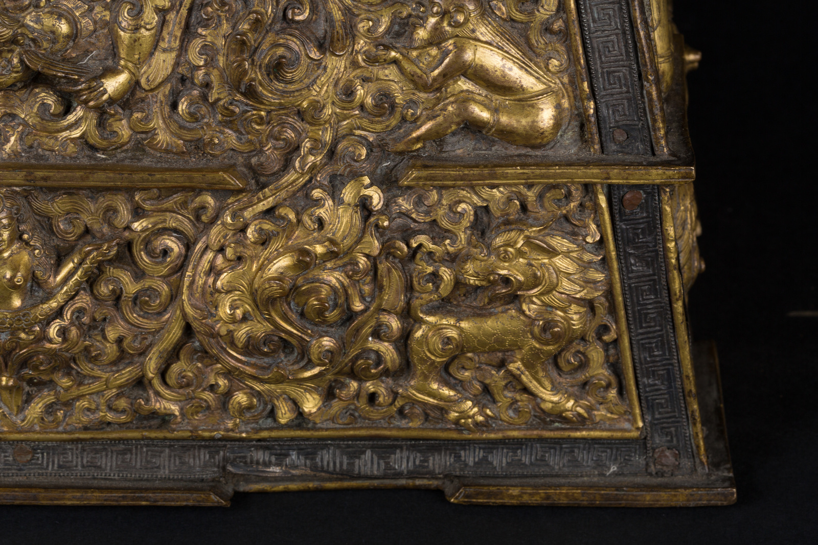 Arte Himalayana Base di statua in bronzo dorato Tibet, XVIII - XIX secolo ....