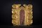 Tibet, XIII-XV secolo. -. Cm 34,00 x 35,00. Importante aureola realizzata in rame a sbalzo dorato a lamina, decorata a motivi vegetali e ritraente otto personaggi ascritti in volute circolari fitomorfe. È presente centralmente una nicchia oblunga colorata con pigmento rosso atta ad ospitare il personaggio a cui apparteneva la prabha. Di non facile identificazione, i personaggi ritratti potrebbero essere gli otto guardiani dei punti cardinali Dikpala: Kubera, Yama, Indra, Varuna, Isana, Agni, Vayu, Nirriti. Se cosi fosse la figura principale assente sarebbe stata con buona probabilità, il boddhisattva Vajrapani nella sua variante stante. Da notare lo stile di realizzazione che farebbe addurre l’origine e l’appartenenza dell’opera al tempio di Densatil. È presente inoltre nell’alloggiamento una sillaba incisa.