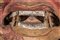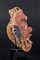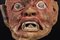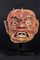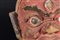 . -. Cm 31,00 x 30,00. Grande frammento di statua in argilla secca e con cospicue tracce di colore, raffigurante probabilmente il volto del protettore della dottrina buddhista Begtse Chen. Di carnagione rossa presenta un aspetto irato e tre occhi sgranati di cu uno sulla fronte, inoltre la bocca schiusa in atteggiamento feroce mostra zanne acuminate e lembi di fiamme ai lati. Considerando la dimensione del volto é possibile imaginare l’imponenza scultura originaria, che probabilmente faceva parte degli arredi statuari di un tempio buddhista.