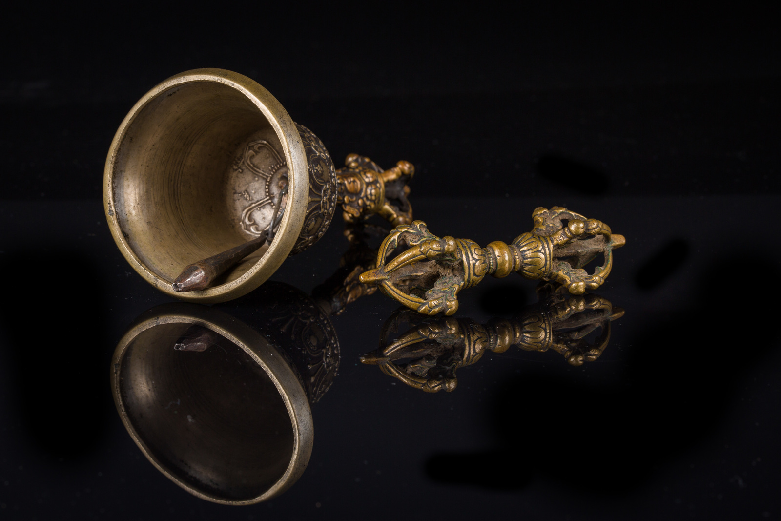 Arte Himalayana Lotto composto da ghanta e vajra in ottone e bronzo