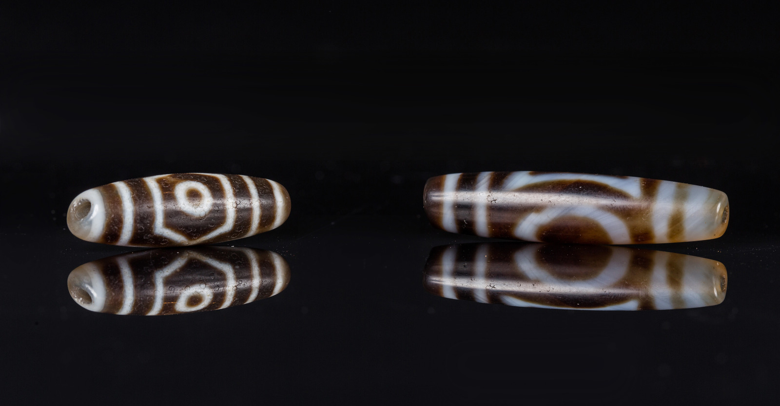 Arte Himalayana Two dzi, one with one eye, the other with three eyes . . Cm 5,00.