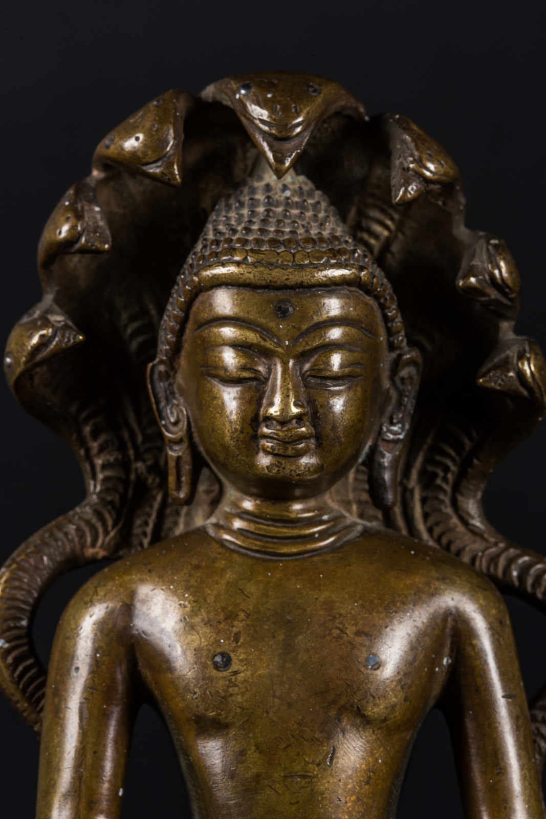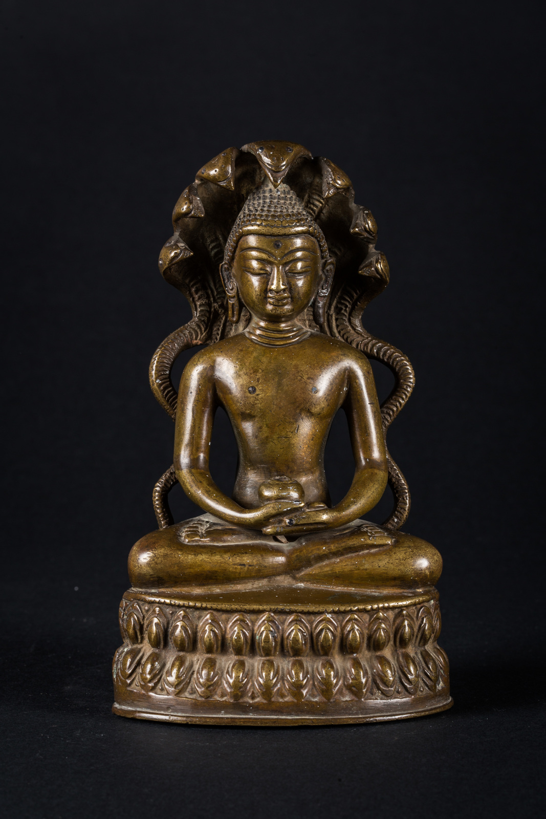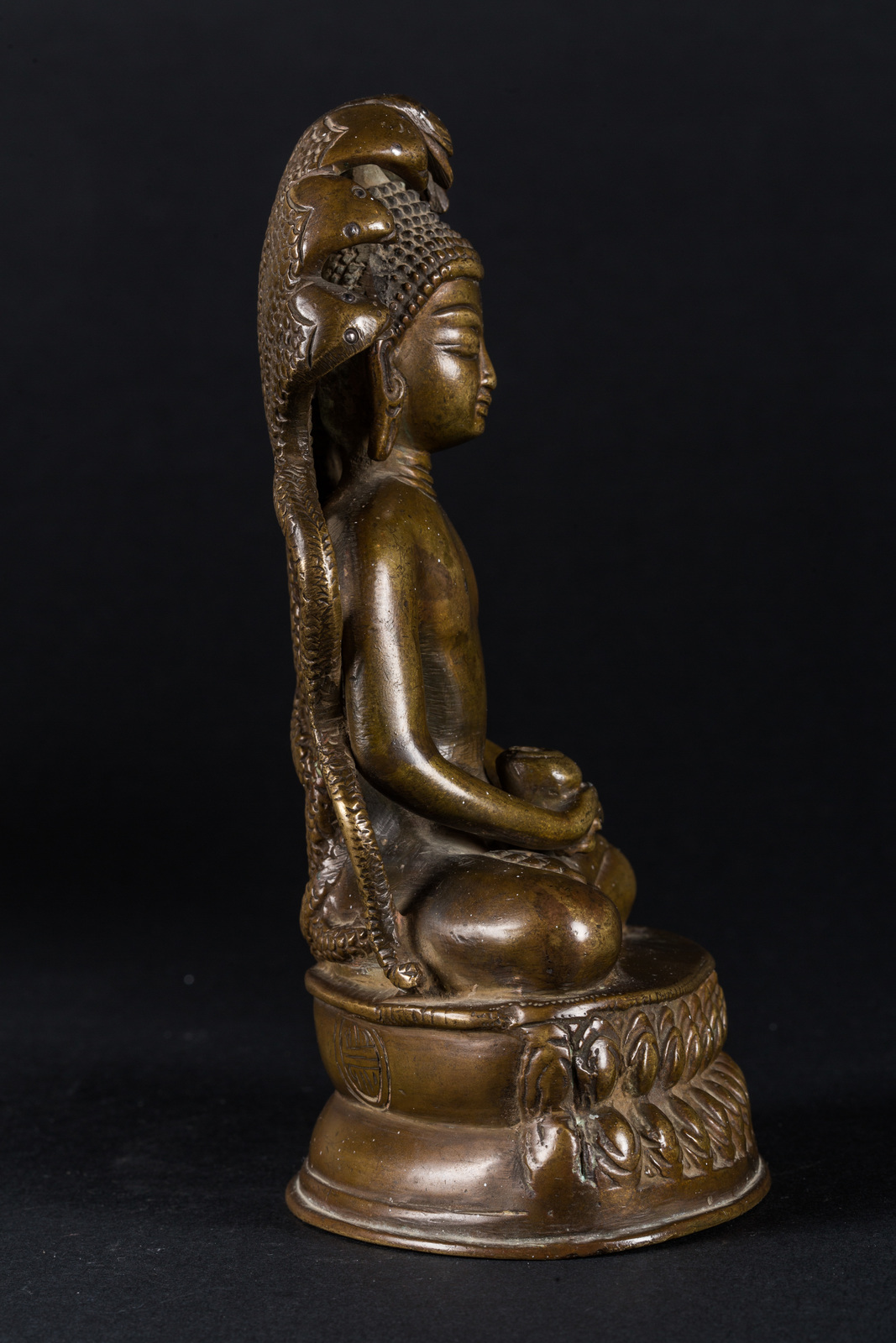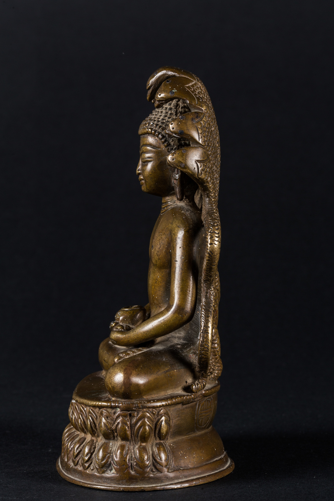 Arte Himalayana A bronze sculpture depicting Buddha with naga Nepal, 19th century . . Cm 10,00 x 19,00.