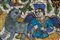 Arte Islamica A huge round pottery tile painted with winged figure with two lions over floral ground