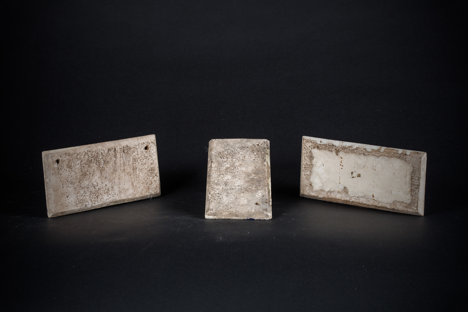 Arte Islamica Three blue and white pottery Kutahya border tiles painted with floral motif