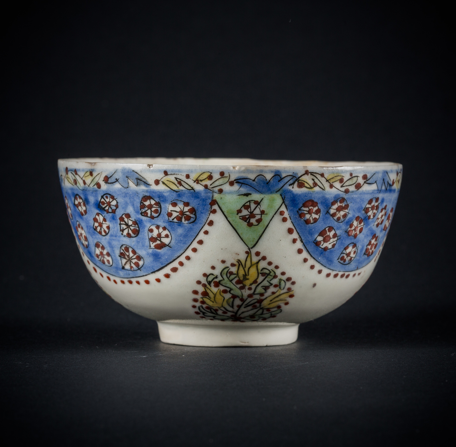 Ottoman Turkey, Kutahya, 18th century . . Cm 12,00 x 6,00. Bearing an inside mark in the shape of a small stylized human head and torso.