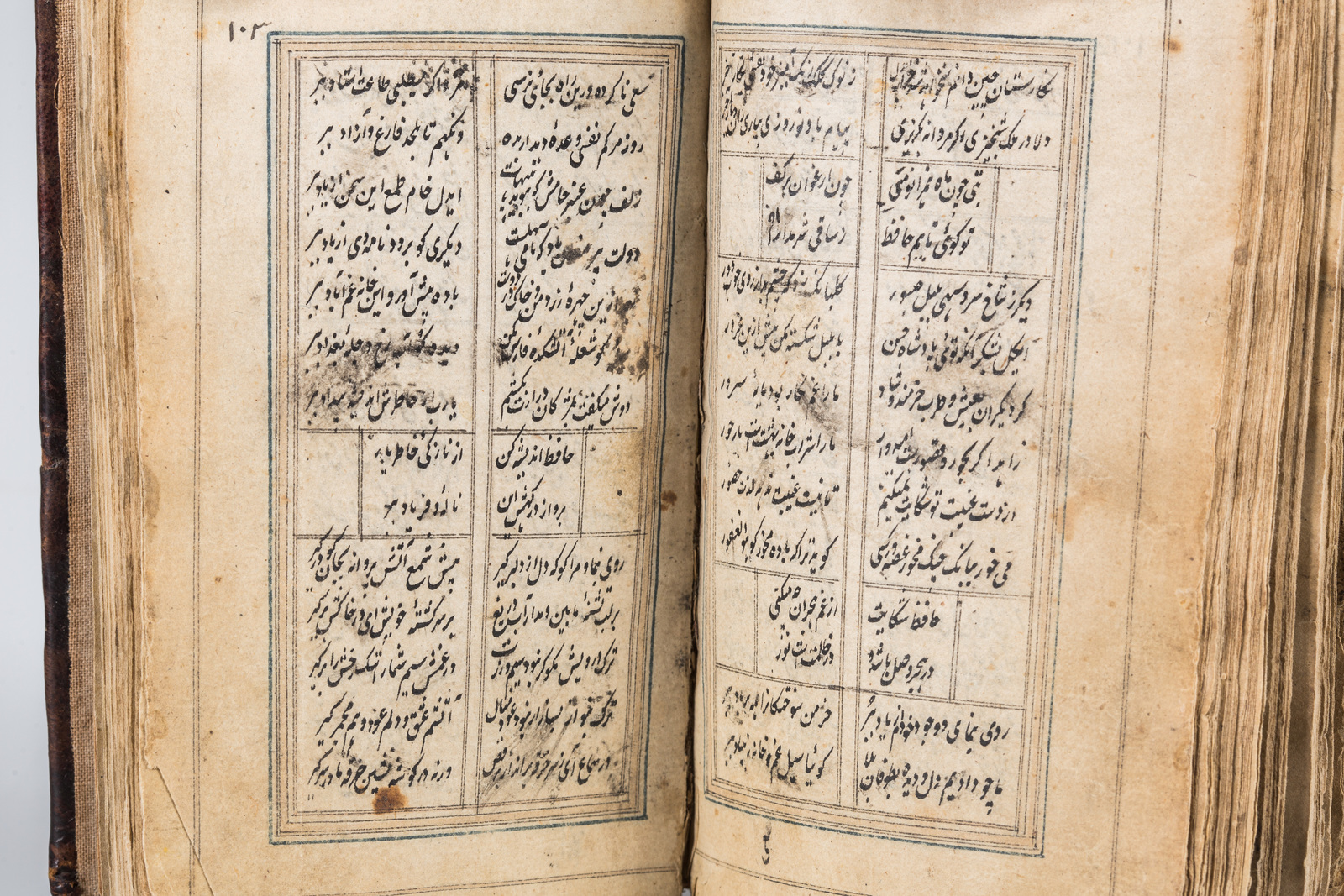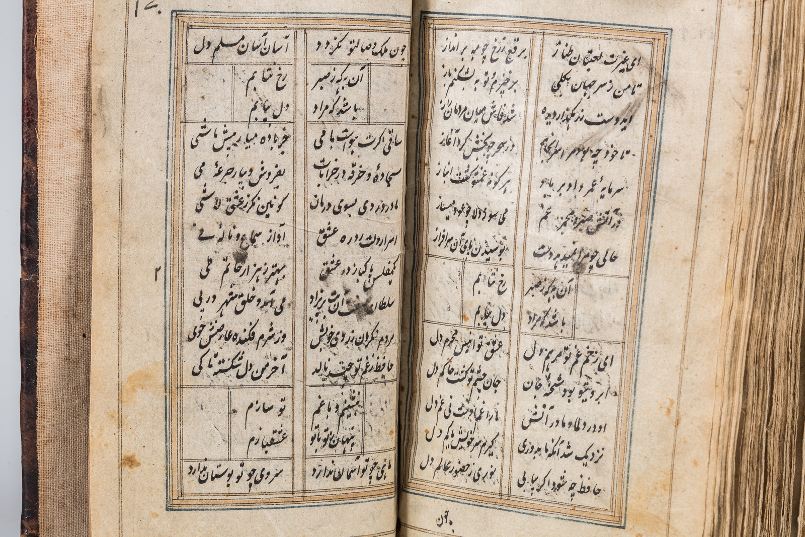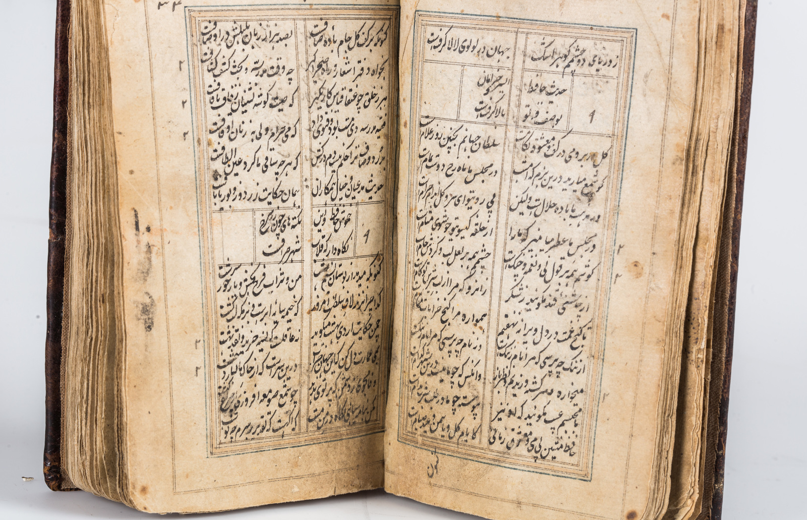 Persia, 18th century . . . Persian manuscript on paper composed of 170 leaves, some of them missing at the end. Text written in nasta'liq script with black ink in double colomn of 14 lines to the page.