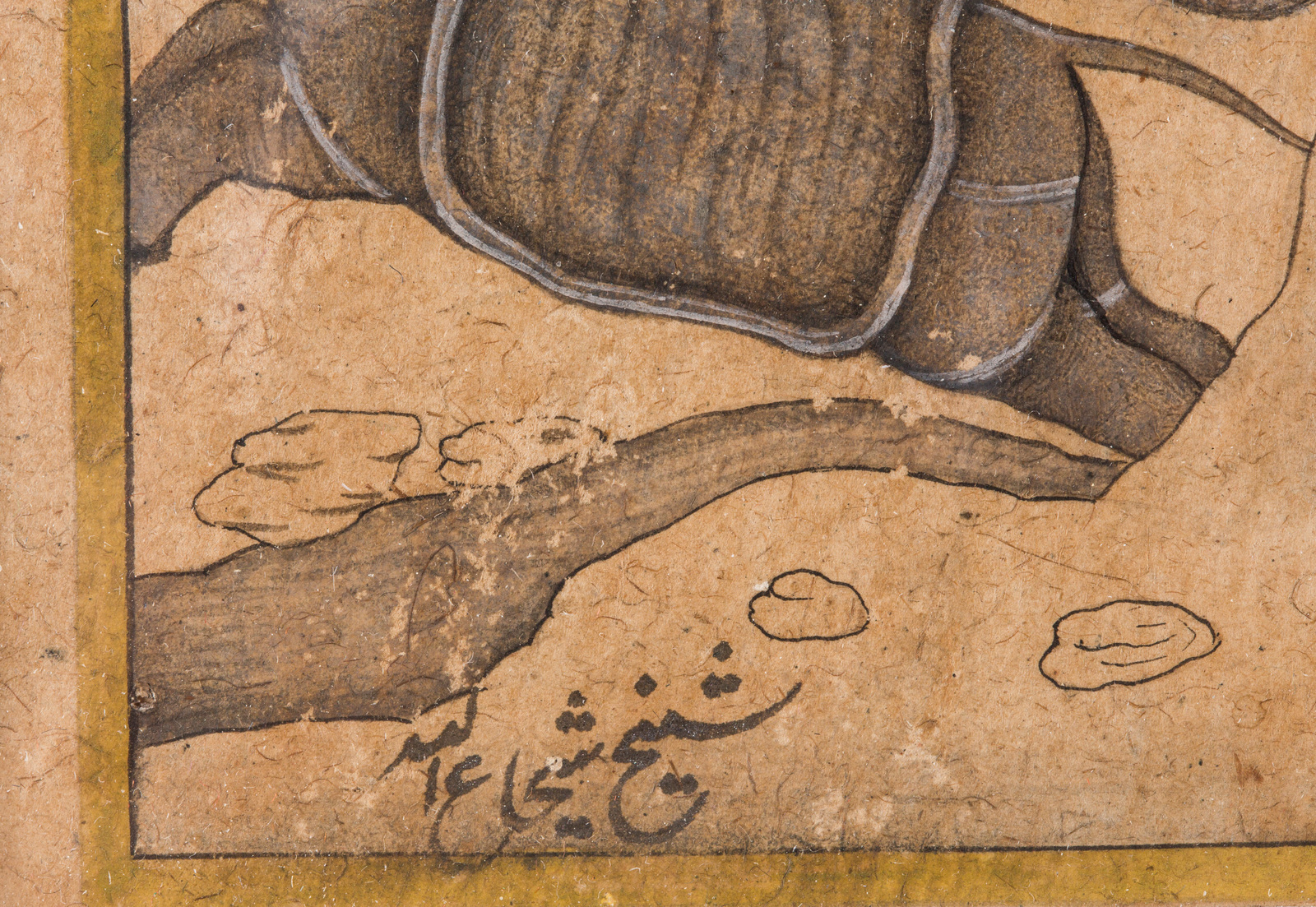 Arte Indiana Disegno con elefanti firmato da Sheikh Shoja Allah di Lahore