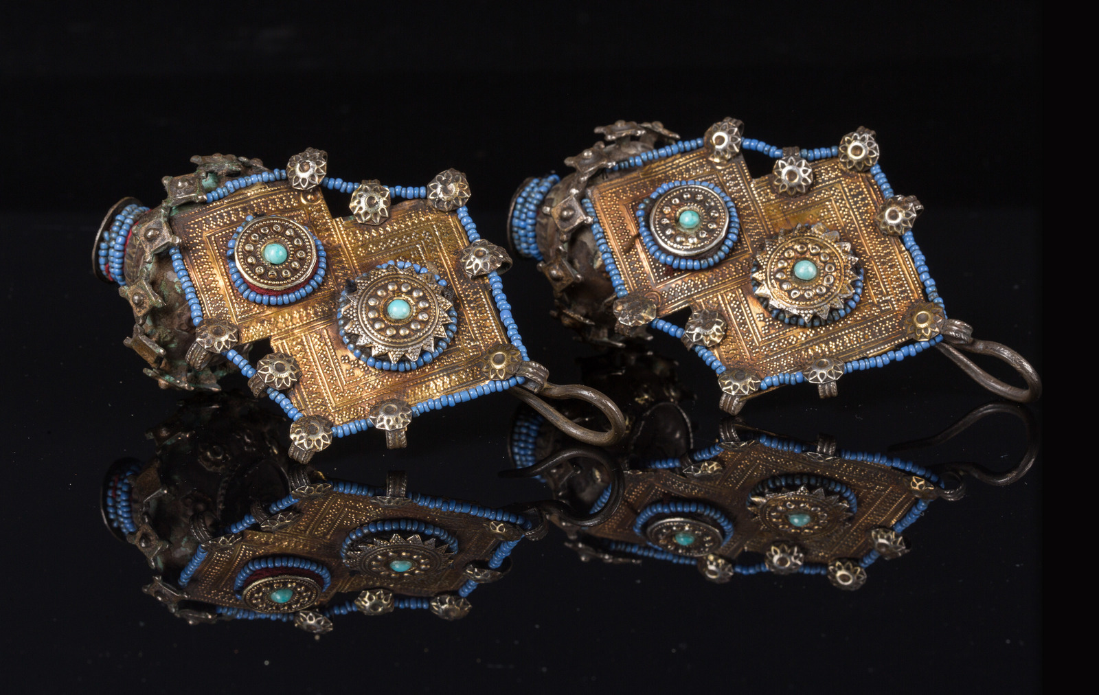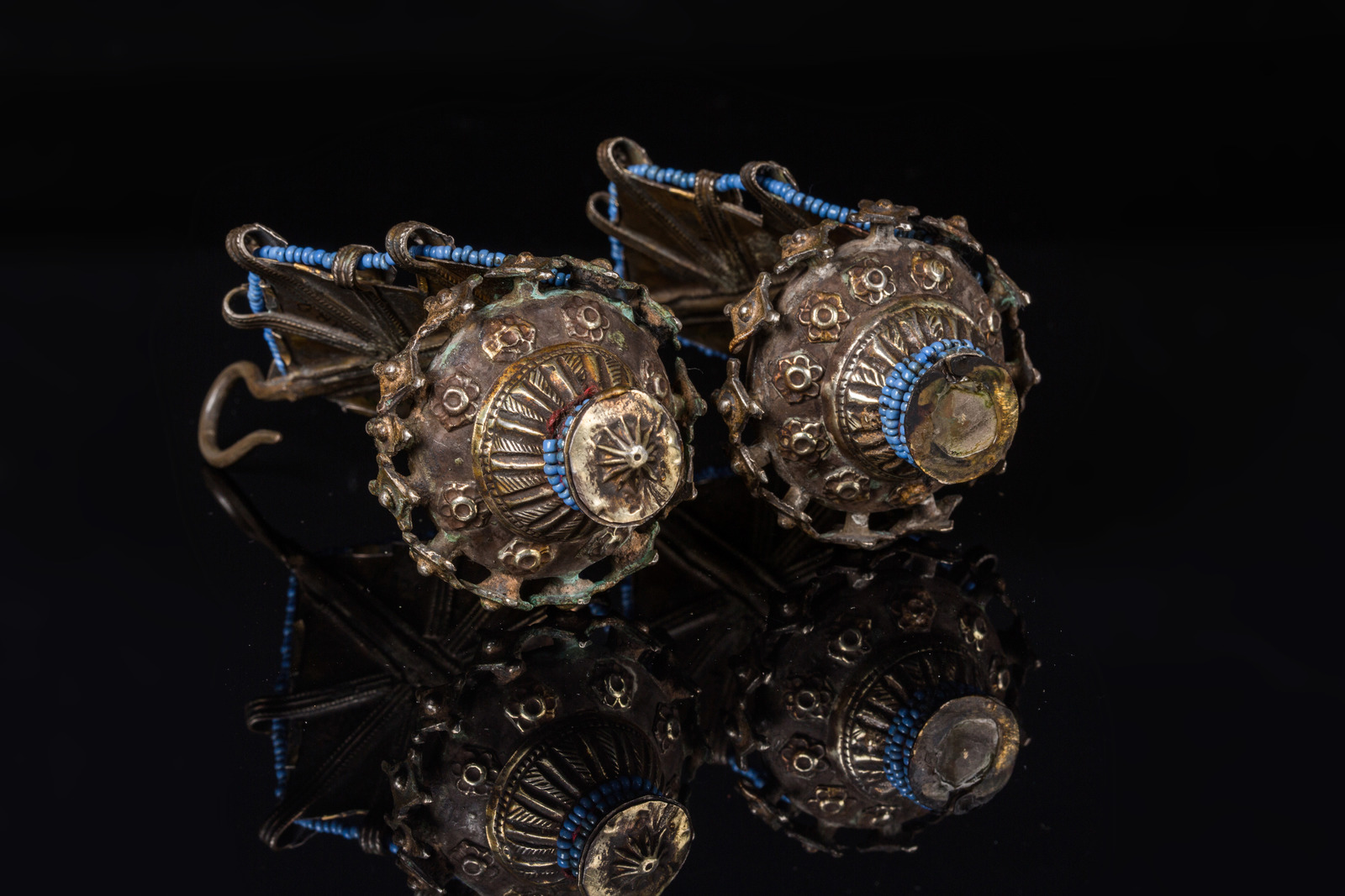 Arte Islamica Coppia di orecchini in argento e lamina d'oro