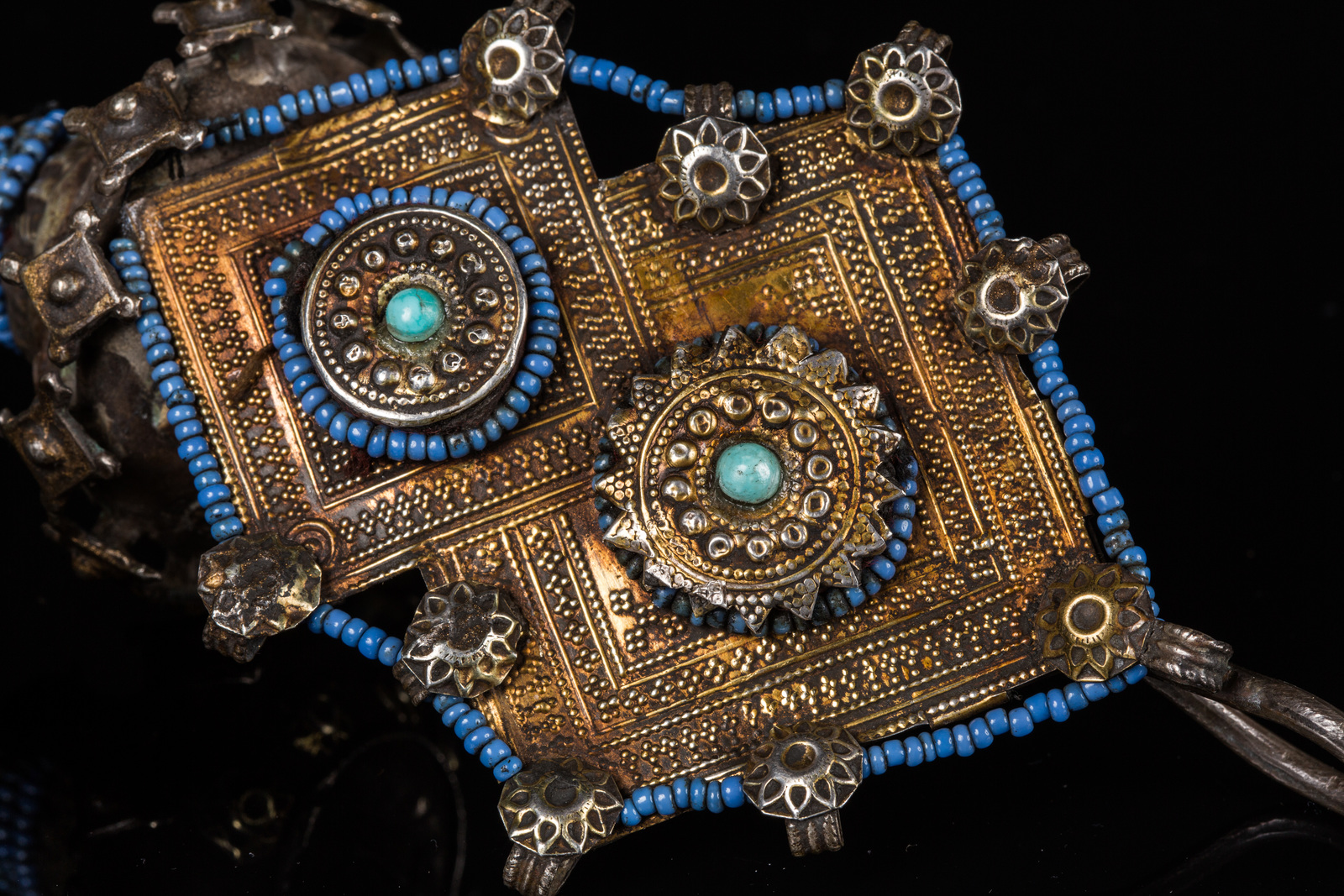 Arte Islamica Coppia di orecchini in argento e lamina d'oro Uzbekistan,...