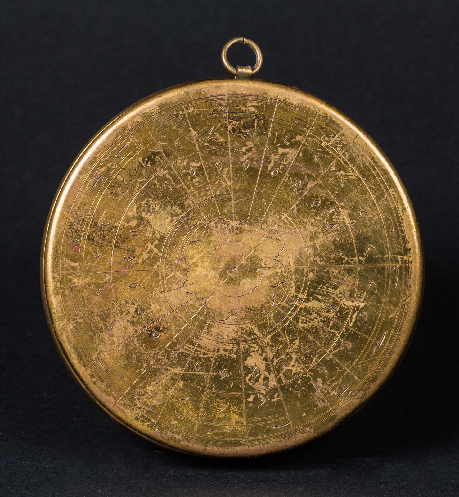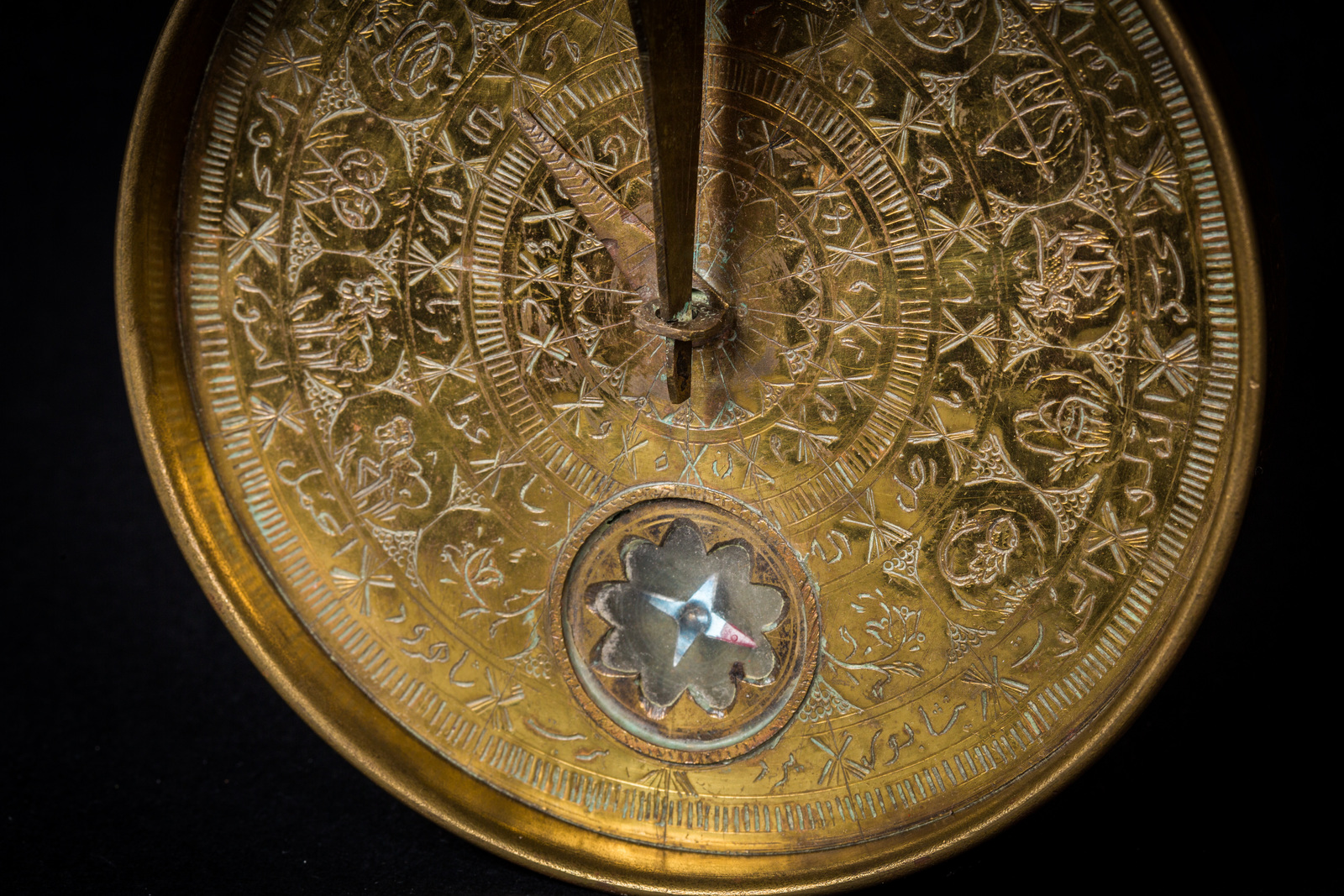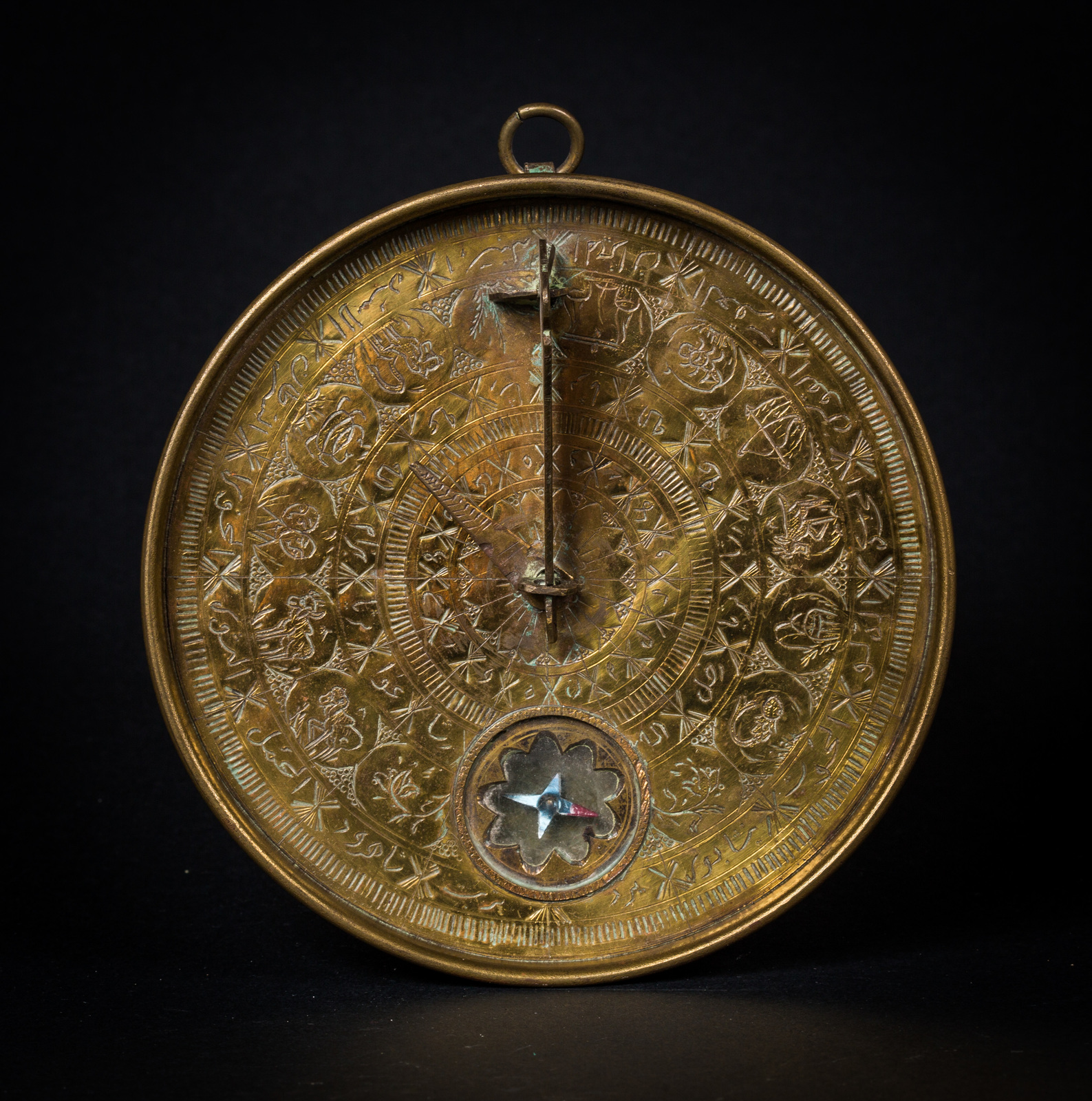 Arte Islamica Indicatore di Qibla in ottone inciso