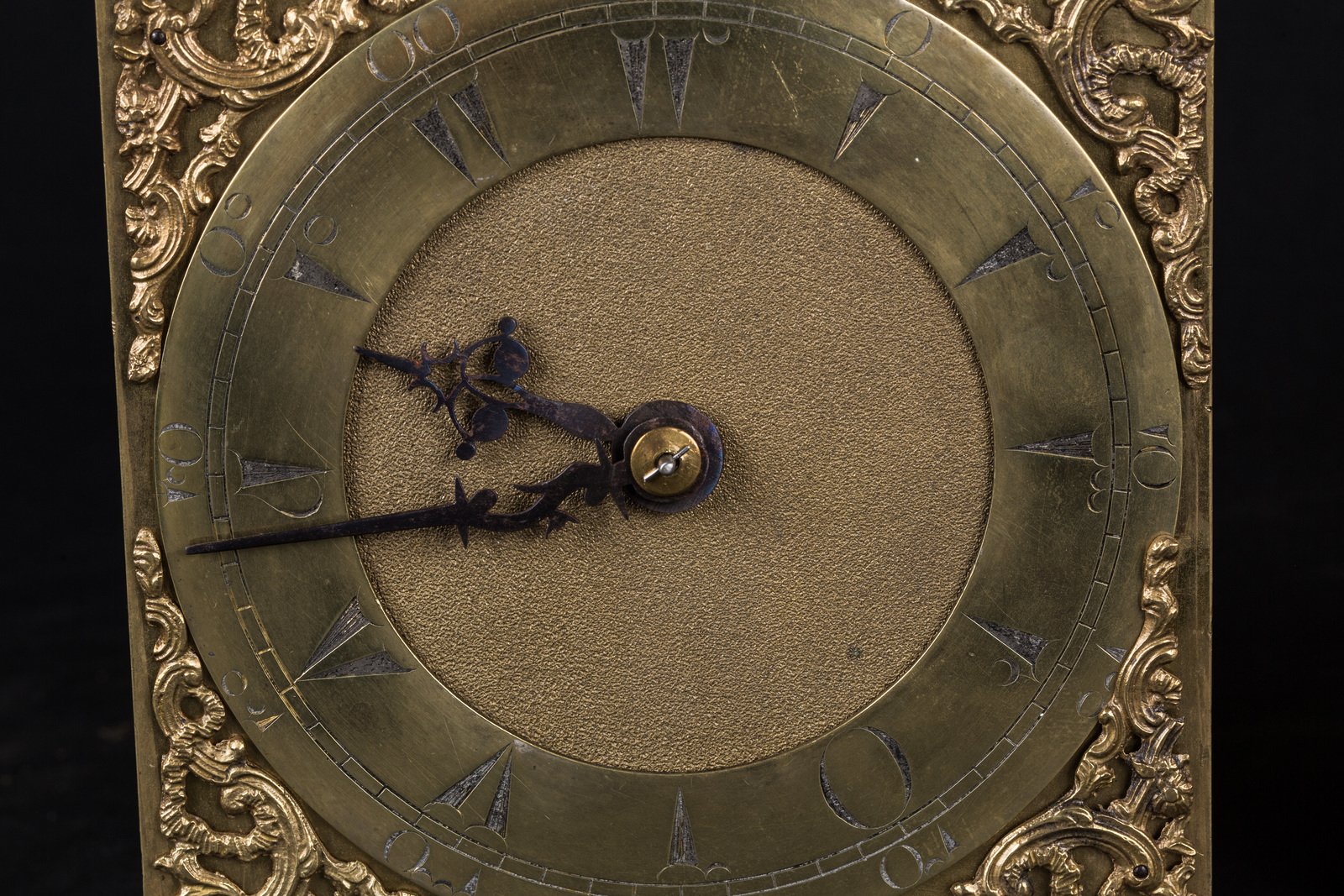 Islamic Art An Ottoman brass clock decorated with vegetal motifs and with an inscribed cartouche Turkey, 18th century . . Cm 15,00 x 33,00 x 11,00. In perfect working condition