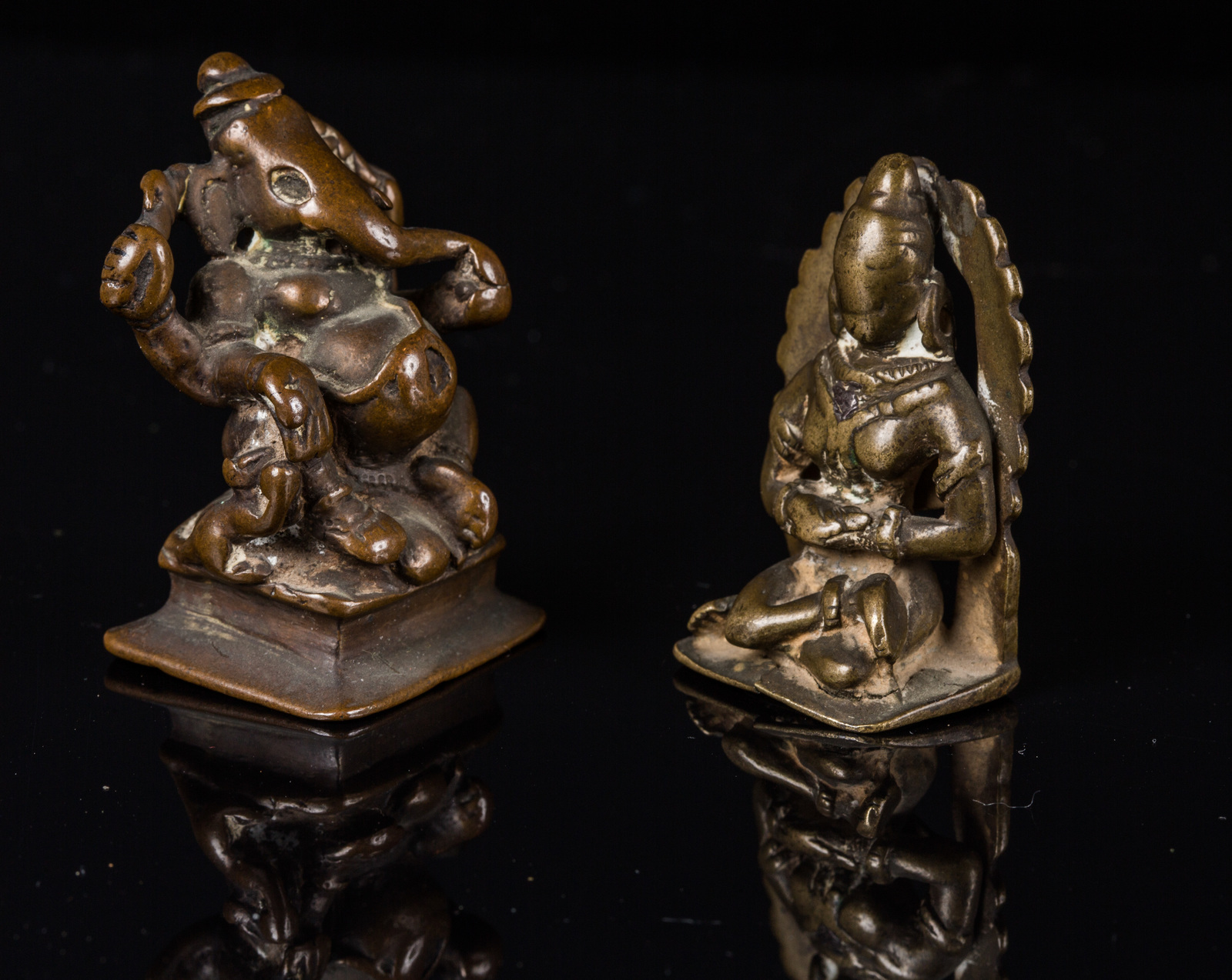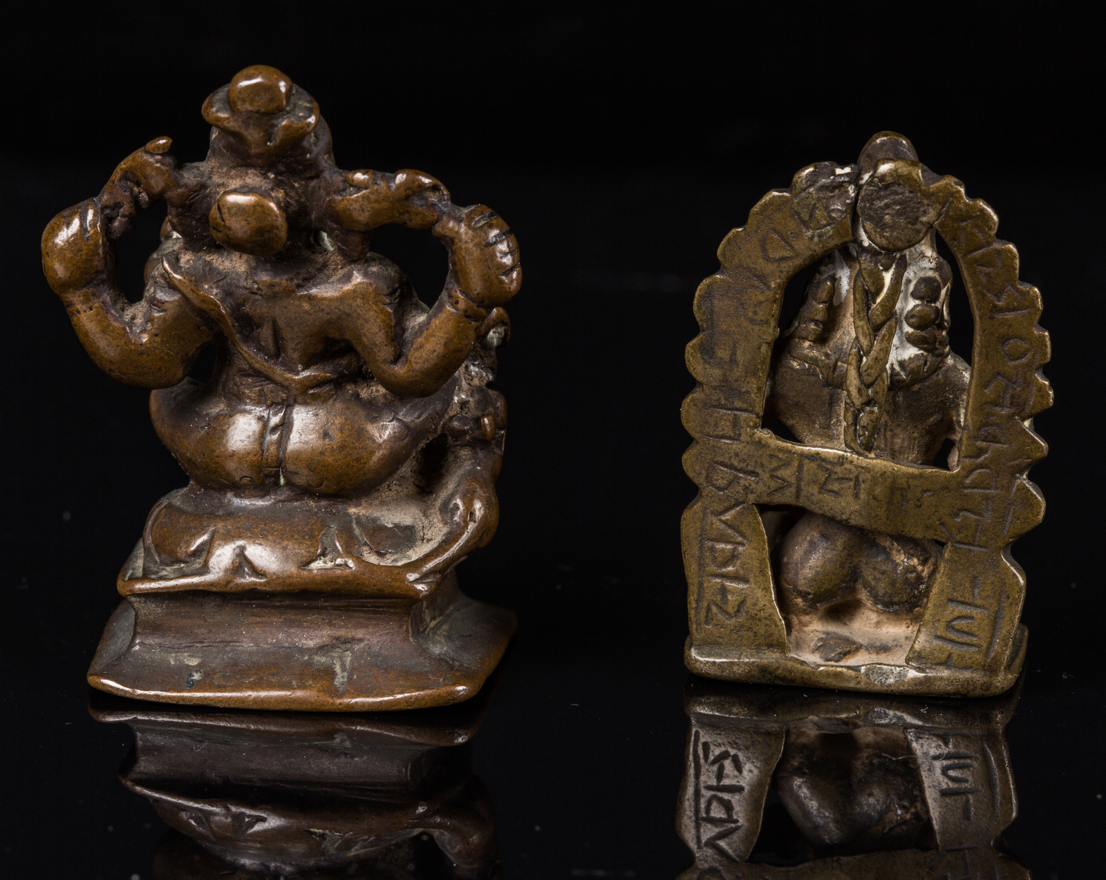 Arte Indiana Lotto composto da due piccoli bronzi raffiguranti Ganesh ed una...