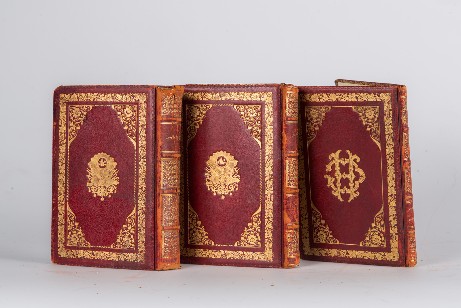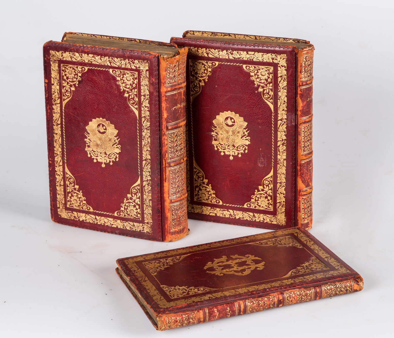Islamic Art ThreeTurkish printed books with tughra of Sultan Abdulhamid II on the cover