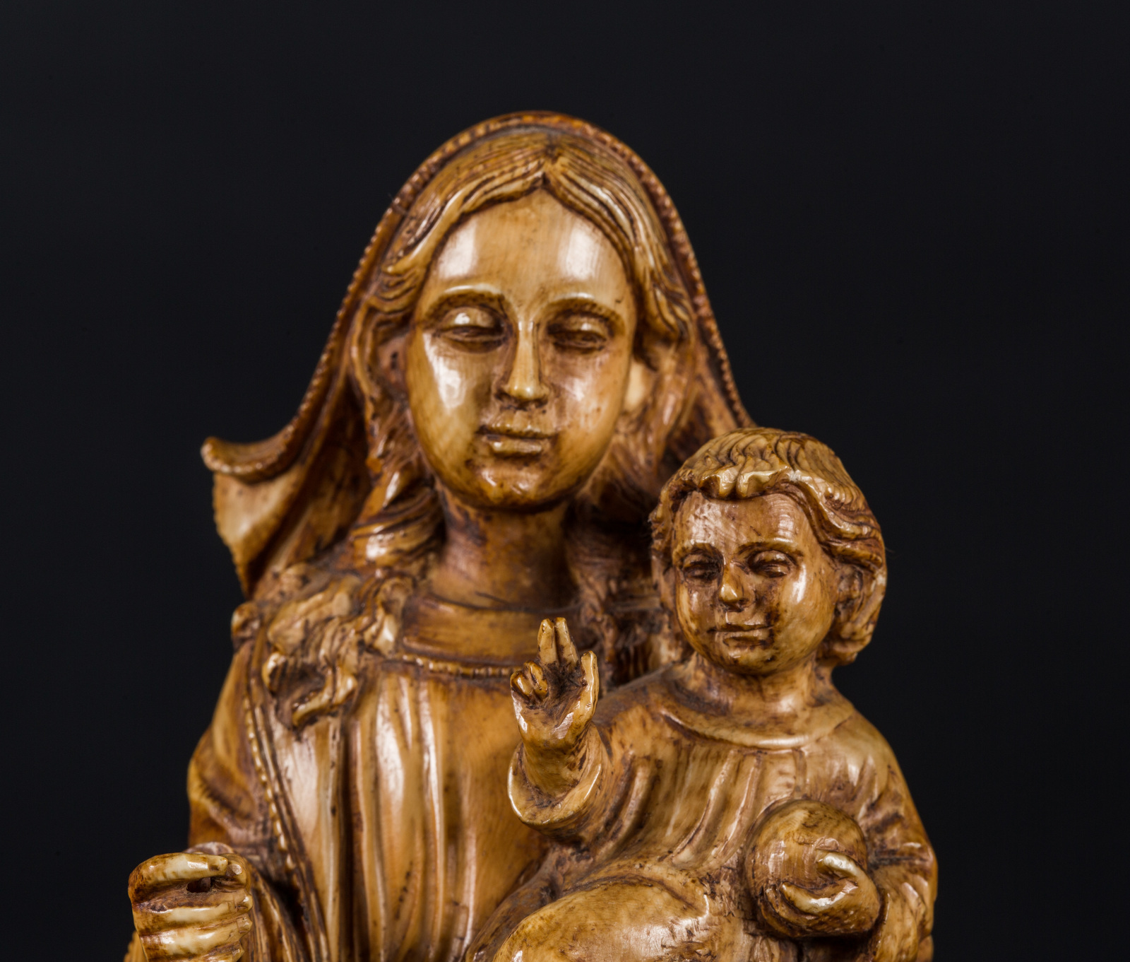 Indian Art An ivory carved figure of the Virgin Mary and Child