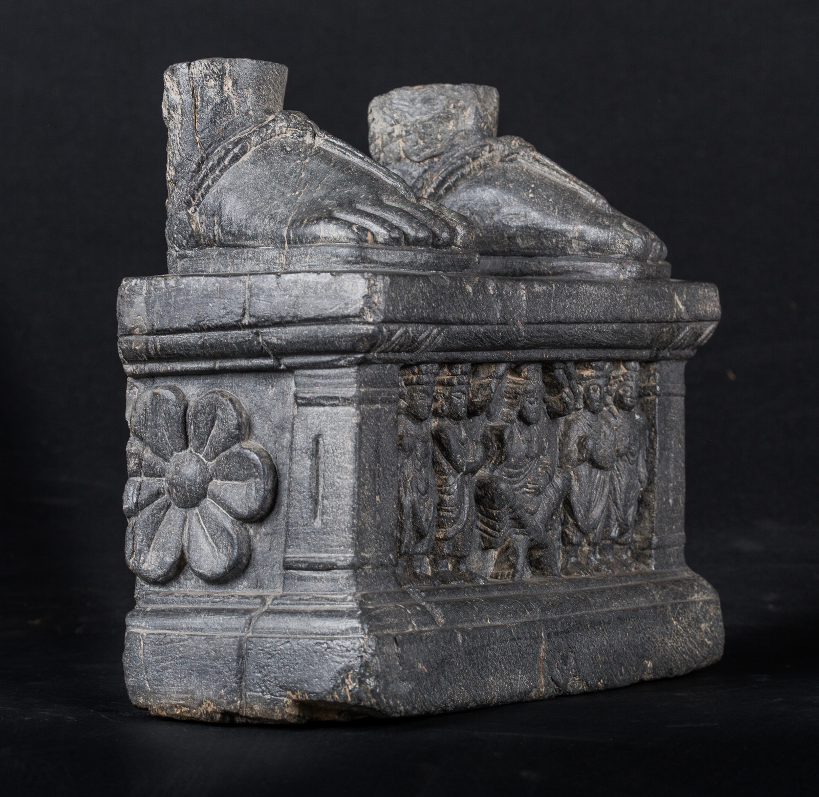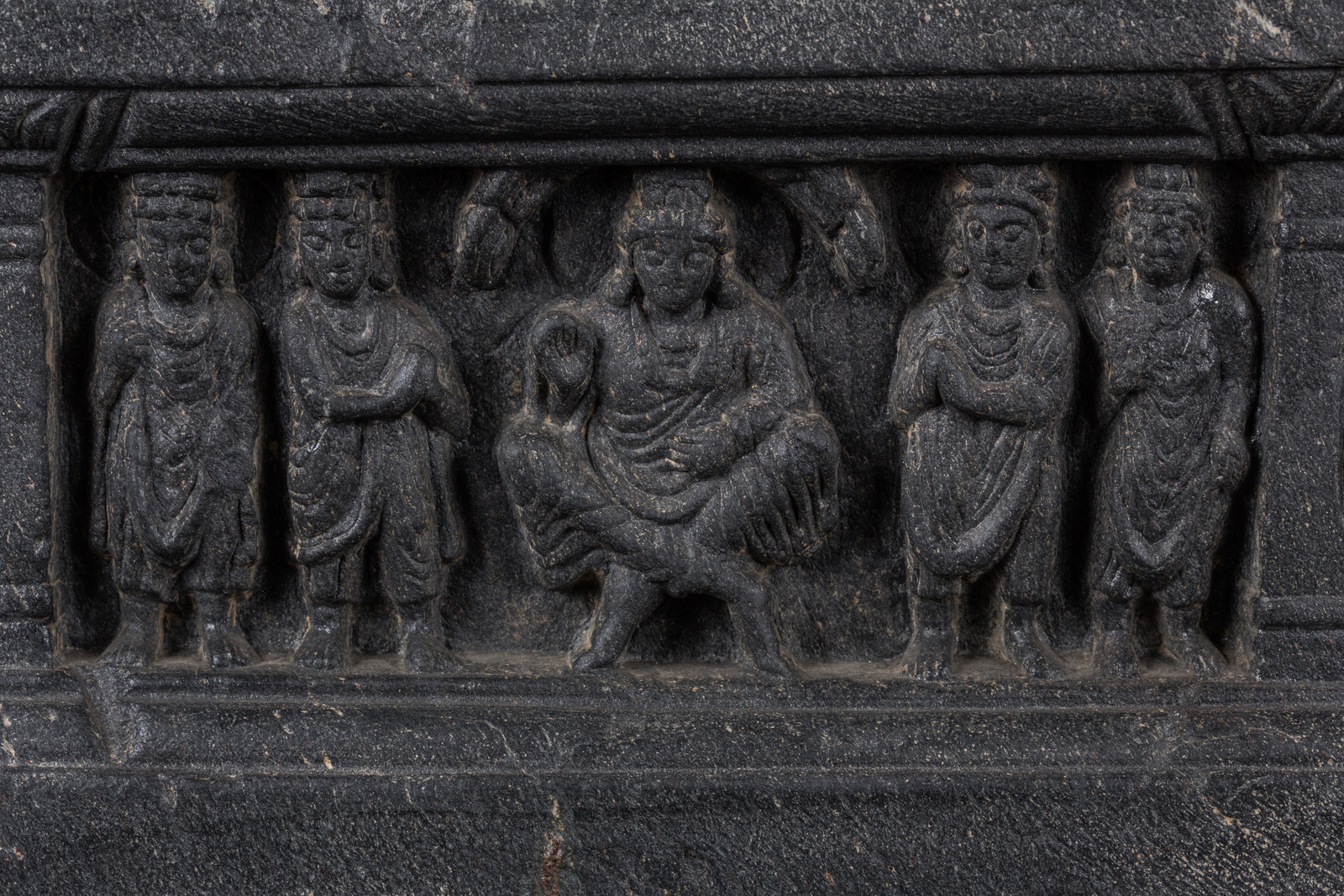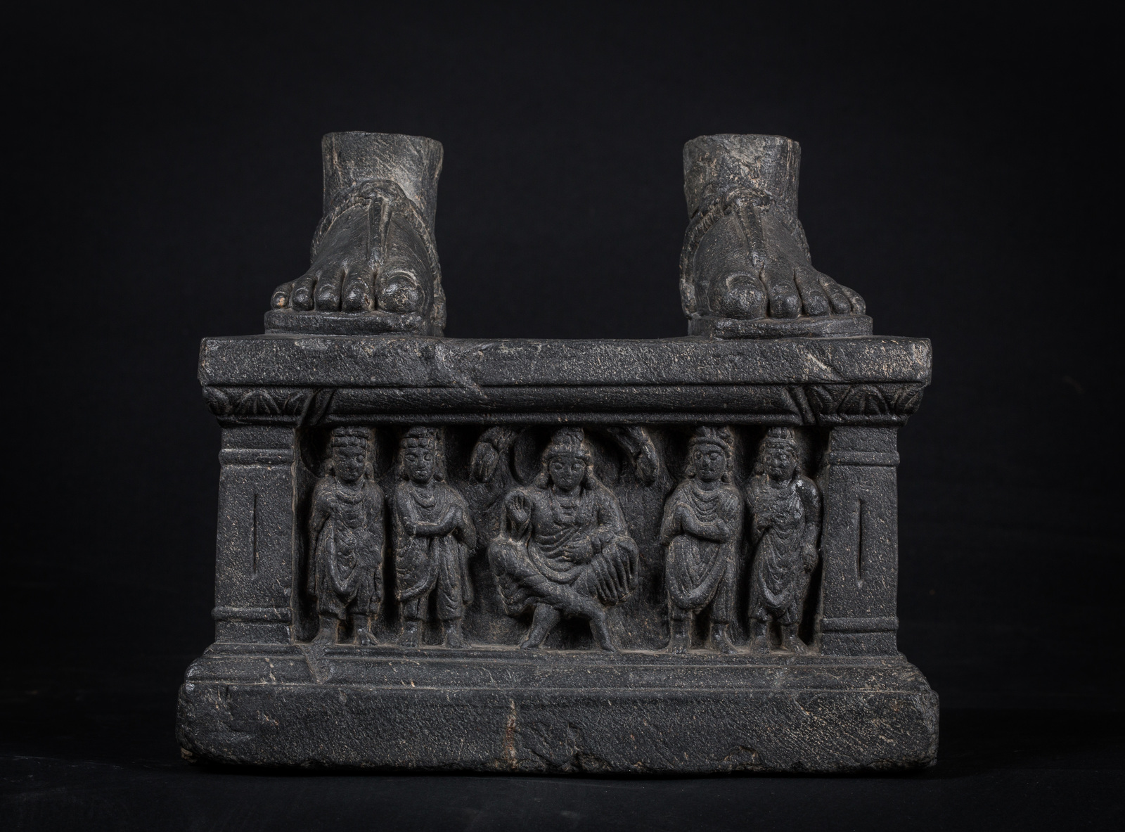 Arte Indiana Base di statua in scisto grigio Arte del Gandhara, II-VIII...