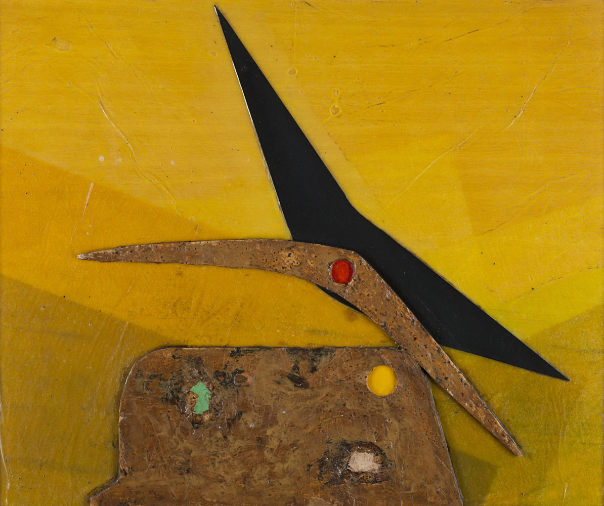 tecnica mista e sughero su tavola, cm 38x46