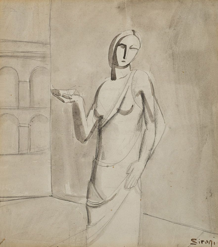 Mario Sironi (Sassari 1885 - Milano 1961)"Figura femminile e architettura" 1925 ca