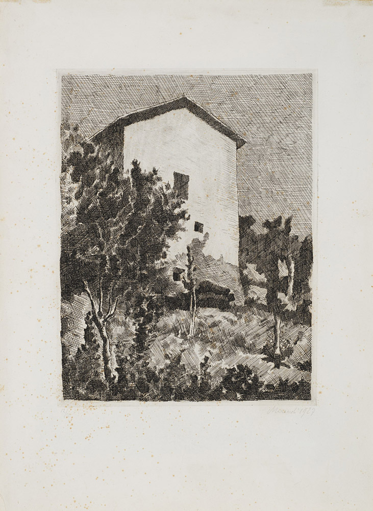 Giorgio Morandi (Bologna 1890 - 1964)"Paesaggio - Casa a Grizzana" 1927