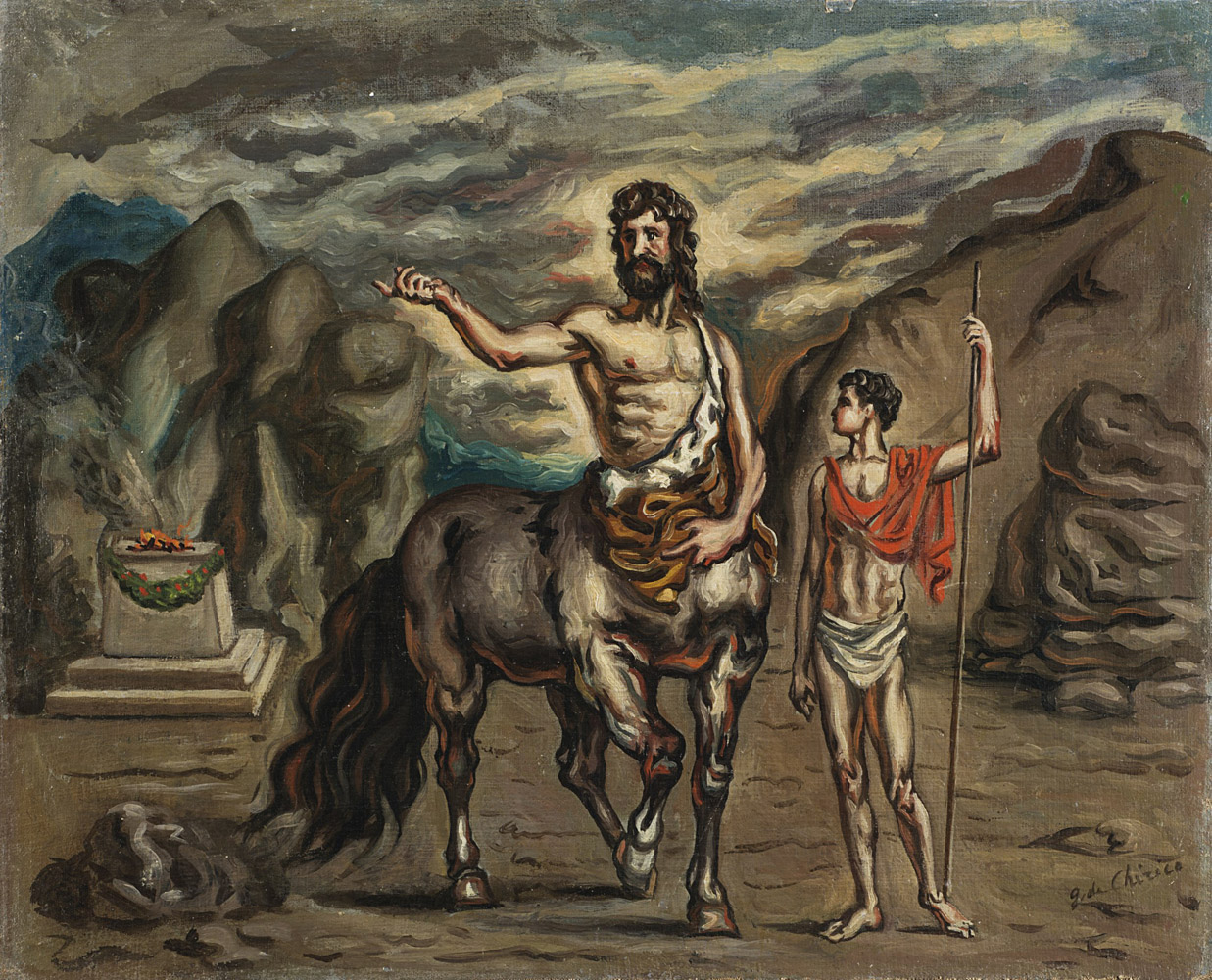 Giorgio De Chirico (Volos 1888 - Roma 1978)"Achille e Chirone" 1938
