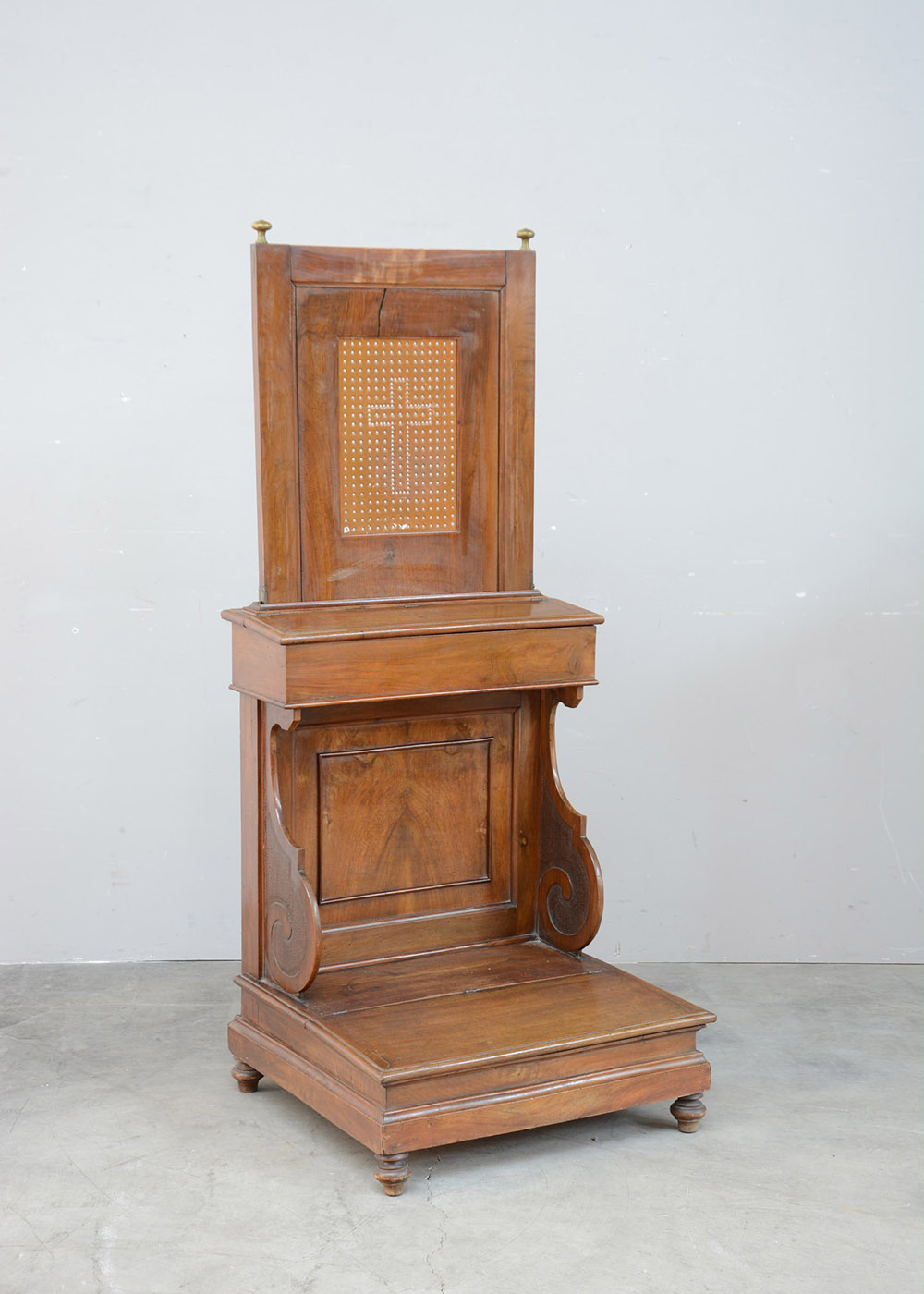 Inginocchiatoio in noce con piano e predella apribili, piedi a cipolla (cm...