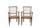 Coppia di poltrone con schienale a giorno e montanti torniti. Piedi rastremati, sedute in paglia di Vienna (difetti)